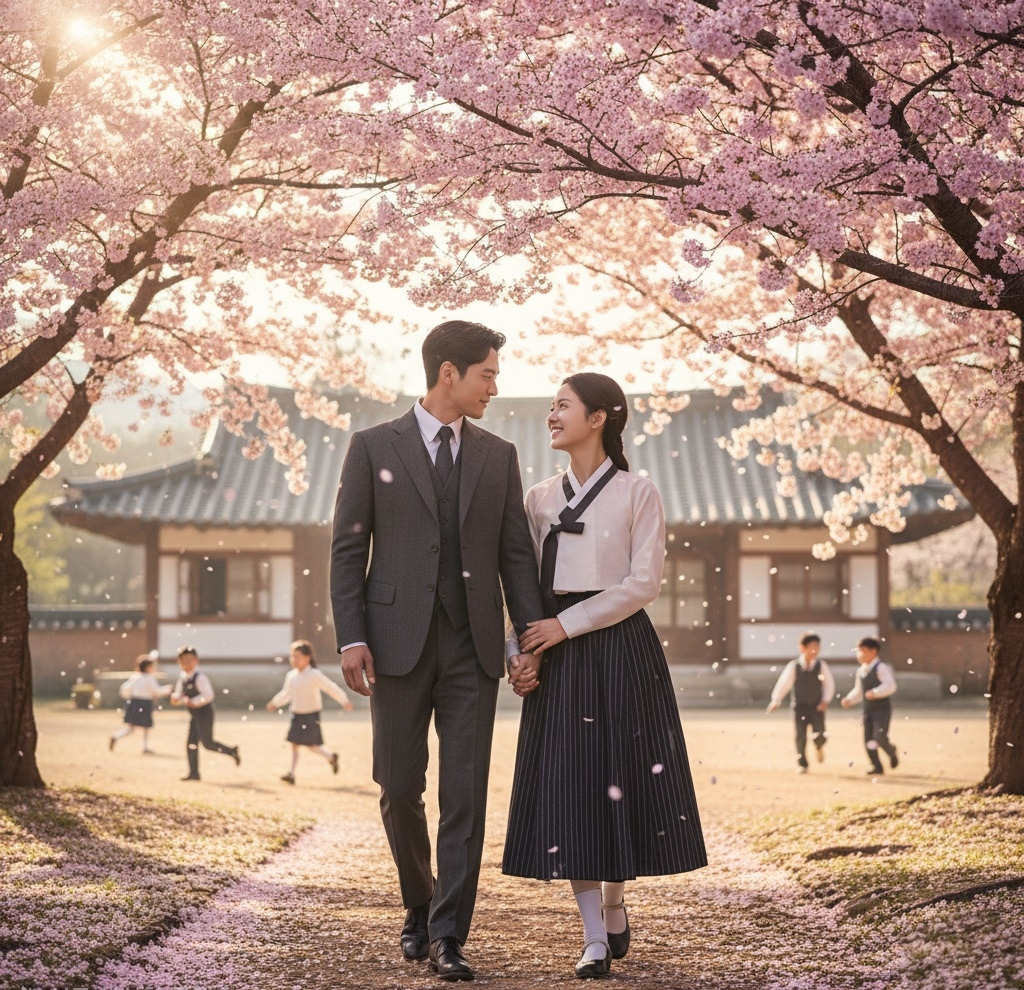 아이들의 밝은 웃음소리가 들려오는 이 평화로운 순간이 두 사람에게는 더없이 소중했다."서영 양 덕분입니다. 이렇게 좋은 일을 할 수 있어서 저도 기쁩니다." 산갑이가 답했다.벚꽃잎이 바람에 흩날리며 두 사람의 어깨 위에 살포시 내려앉았다.
