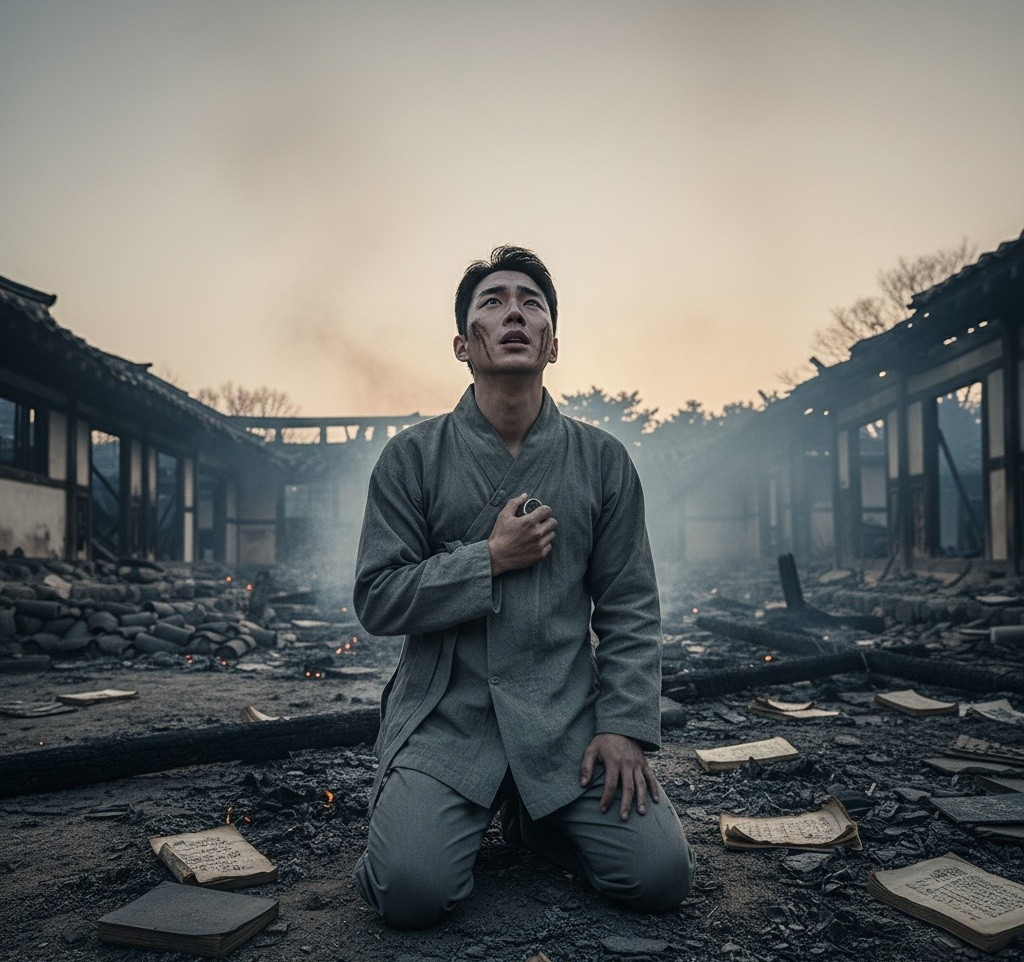 산갑이는 눈을 떴다. 아름다웠던 기억과는 대조적으로, 눈앞에는 처참히 불타버린 학당의 잿더미만 남아 있었다.