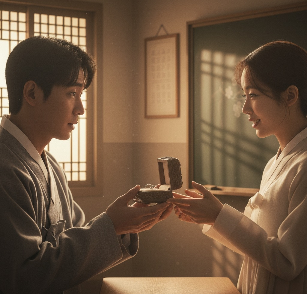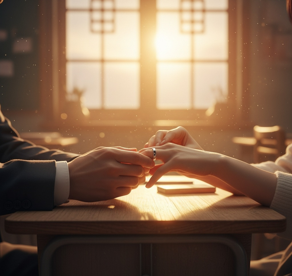 교실의 따뜻한 석양빛이 두 사람을 감쌌다."이 반지가 우리 사랑의 증표가 되었으면 좋겠어요." 서영이 말했다.