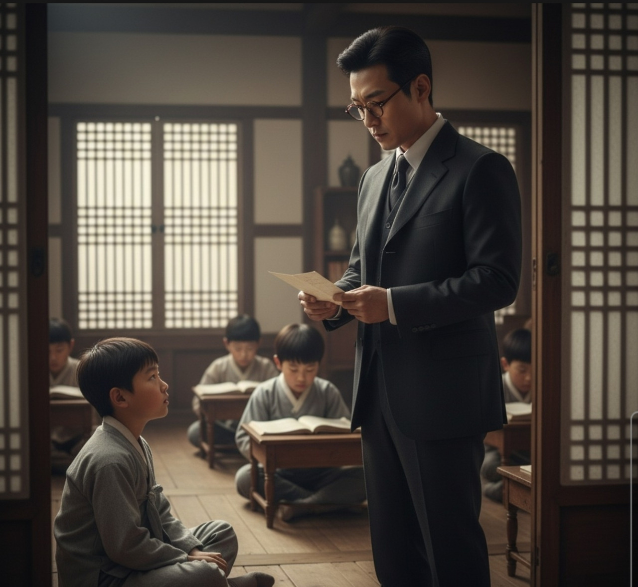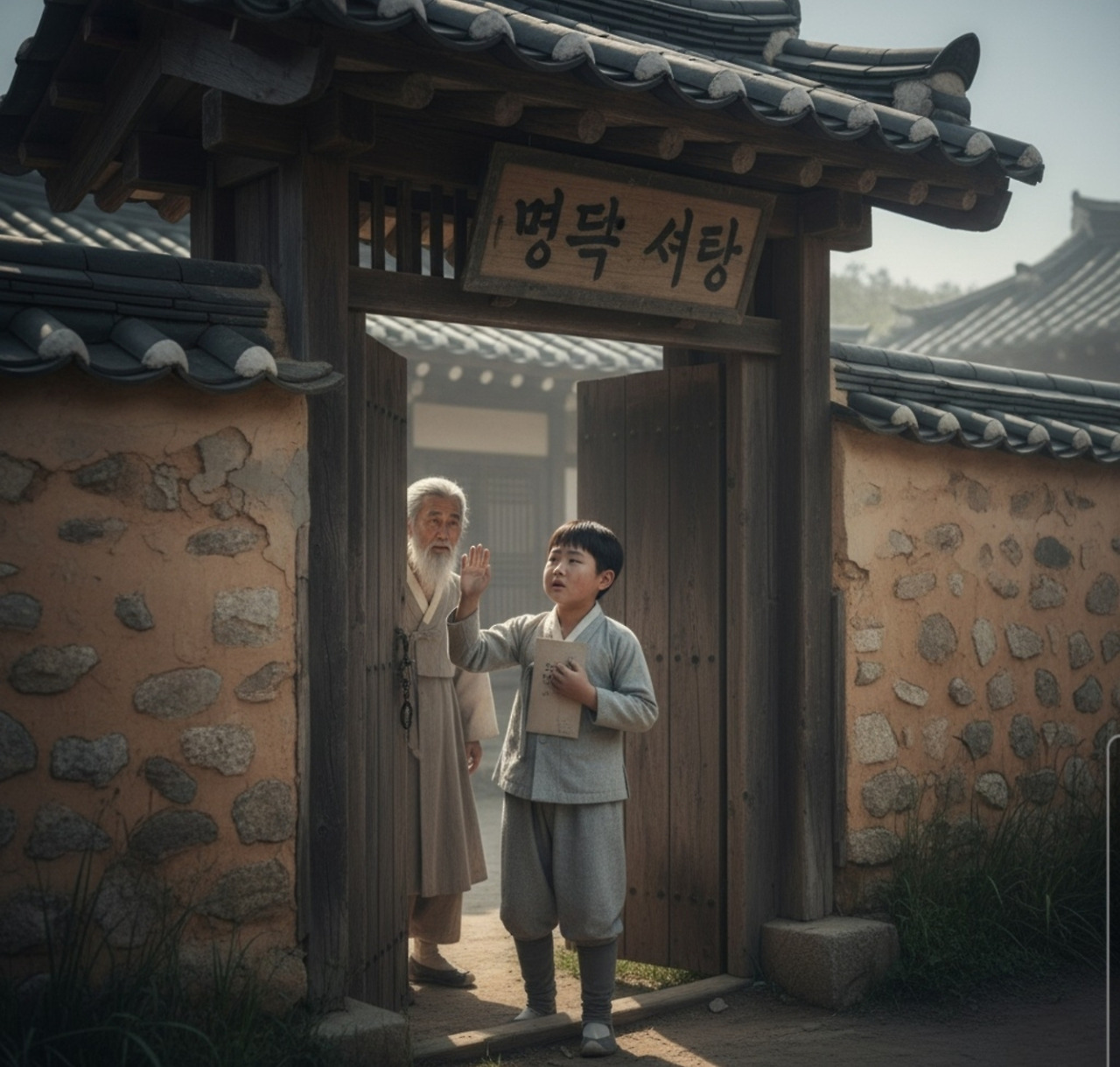 '명덕서당'이라는 낡은 현판이 걸려 있었다. 산돌이는 서당 앞을 몇 번 지나다니며 주변을 관찰했다. 별다른 이상이 없자 조심스럽게 대문을 두드렸다."누구십니까?"안에서 나이 든 선생의 목소리가 들렸다."안녕하십니까. 이산갑 어르신의 심부름으로 왔습니다."잠시 후 대문이 열렸다. 백발의 노인이 산돌이를 위아래로 살폈다.