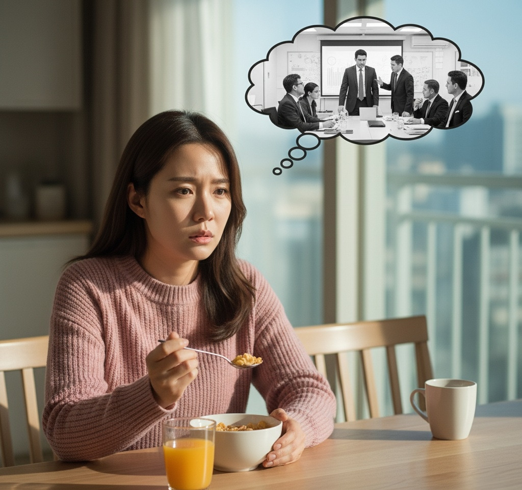 아침 식탁에 앉아서도 포크를 든 손이 미세하게 떨렸다. 남편 준이 물끄러미 그녀를 바라보며 말했다. "마리, 또 그 생각에 잠겨있네. 아직 일어나지도 않은 일들을 왜 그렇게 걱정해? 분명 잘 해낼 거야."
