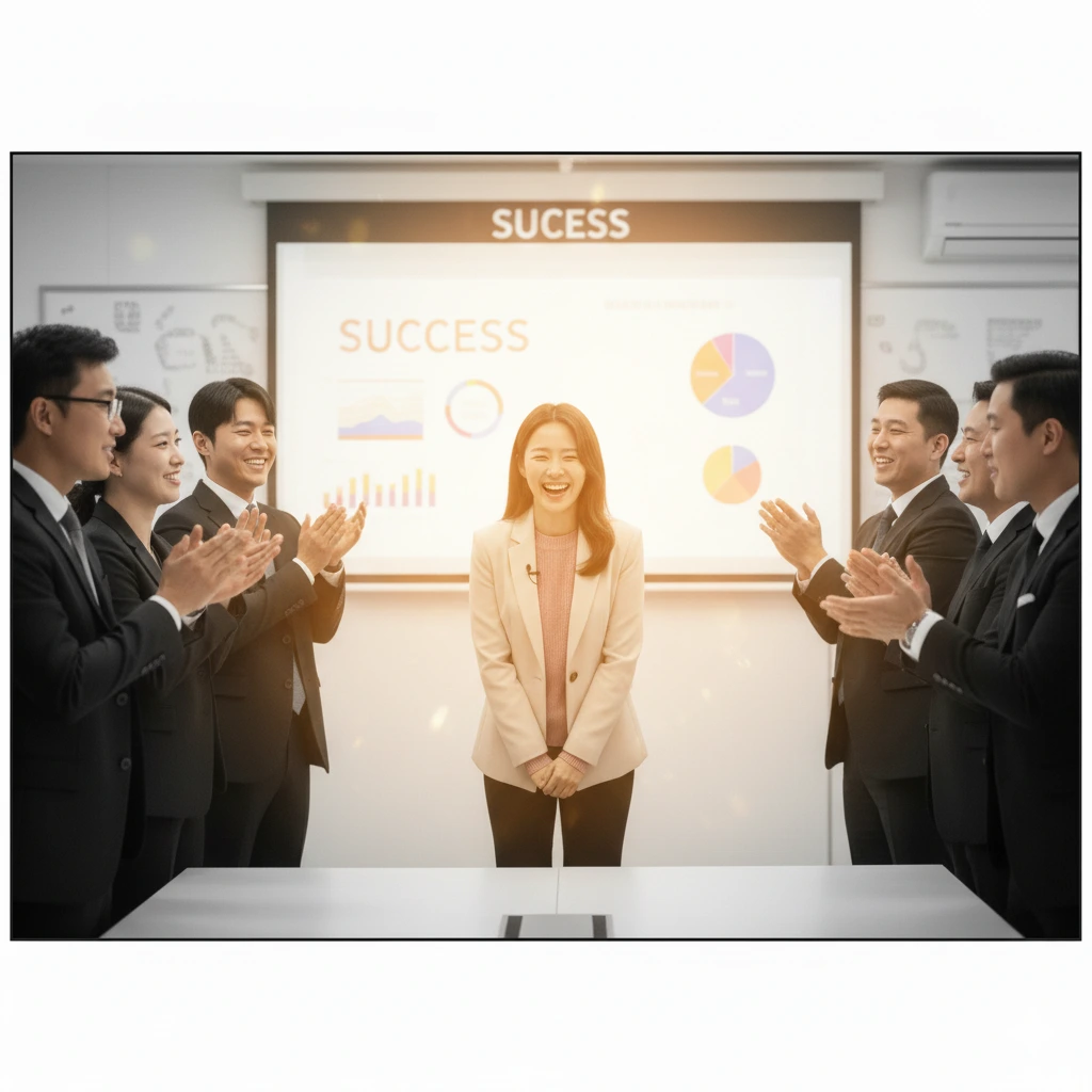 발표가 끝나고, 박수갈채가 쏟아졌다. 그녀의 아이디어는 큰 호응을 얻었고, 팀은 다음 단계로 나아갈 수 있게 되었다. 회의실을 나서며 마리는 깊은 숨을 내쉬었다. '정말 아무 일도 일어나지 않았잖아.' 그녀의 걱정은 마치 연기처럼 사라지고 없었다. 오늘 그녀는 또 하나의 교훈을 얻었다. 뇌가 위험을 예측하려는 본능은 어쩔 수 없지만, 그 위험이 실제로 일어날 확률과 대처 방안을 생각하는 것만으로도 불안의 그림자를 충분히 걷어낼 수 있다는 것을. 그리고 그 모든 과정 속에서 그녀는 조금 더 단단해진 자신을 발견했다.