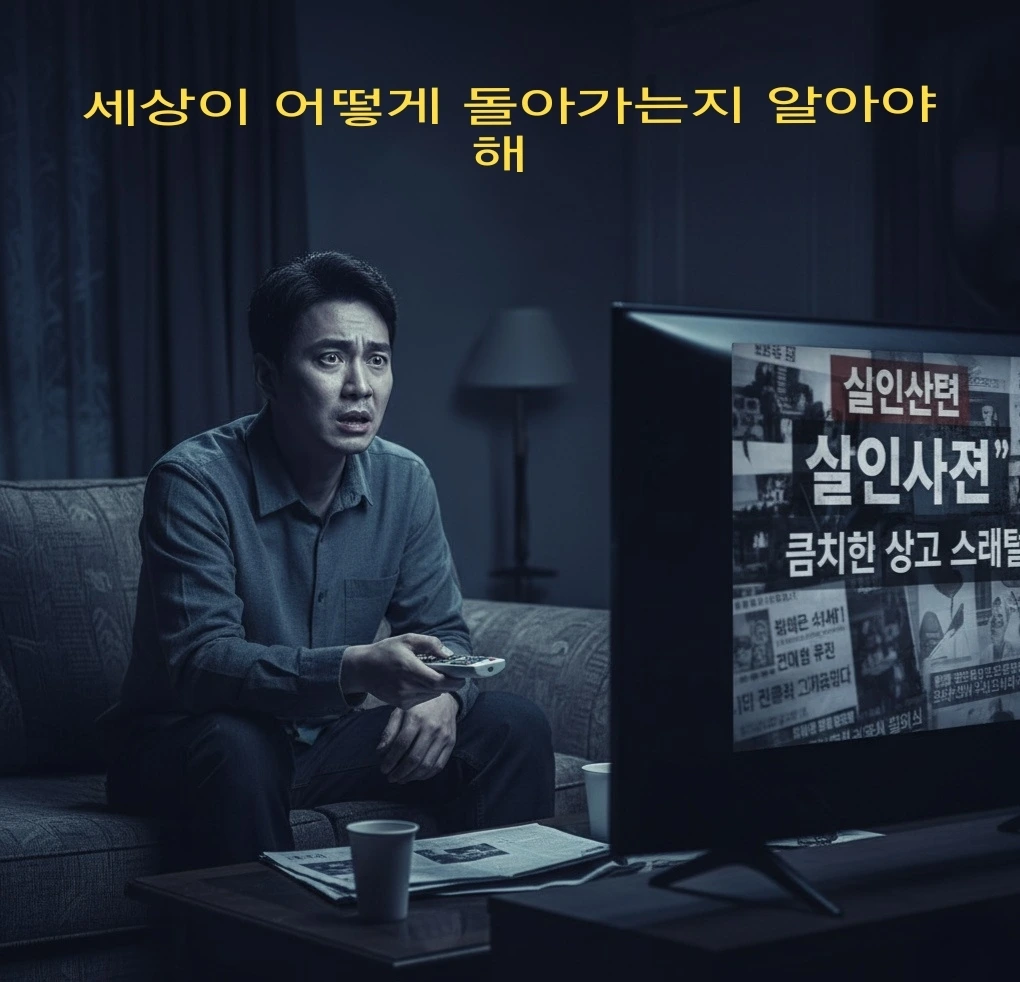 한 남자가 뉴스를 봅니다. 오늘 아침 일어난 살인사건, 끔찍한 사고 소식, 그리고 정치인들의 부패 스캔들까지. 그의 얼굴에는 불안감이 가득합니다. "세상이 어떻게 돌아가는지 알아야 해." 그는 중얼거립니다.