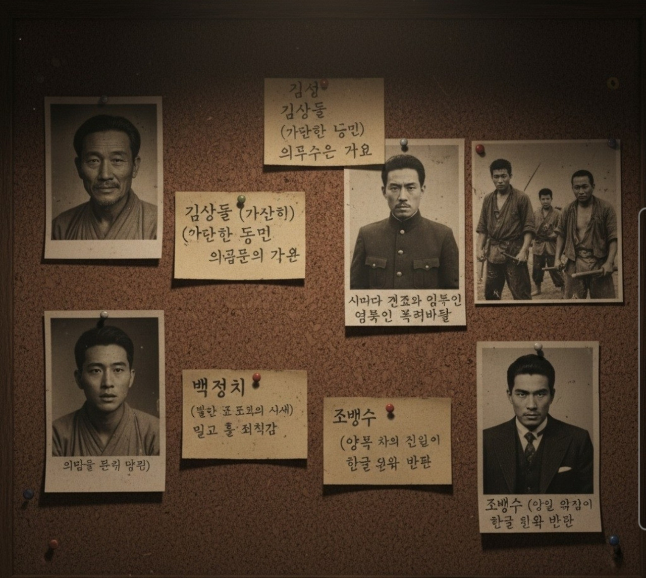 네 번째, 조병수. 친일파 앞잽이로 총독부의 정책에 반하는 모든 것을 없애려 한다. 학당의 한글 교육을 문제시했을 가능성이 크다.이 중에 누가 진짜 범인일까?'정혁진은 각자의 알리바이와 동기를 분석하기 시작했다.