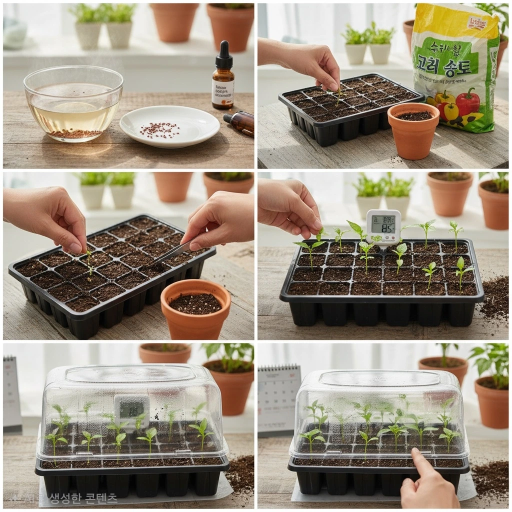 고추 싹을 틔우는 과정은 씨앗 발아를 위한 적절한 환경을 조성하는 것이 중요합니다.