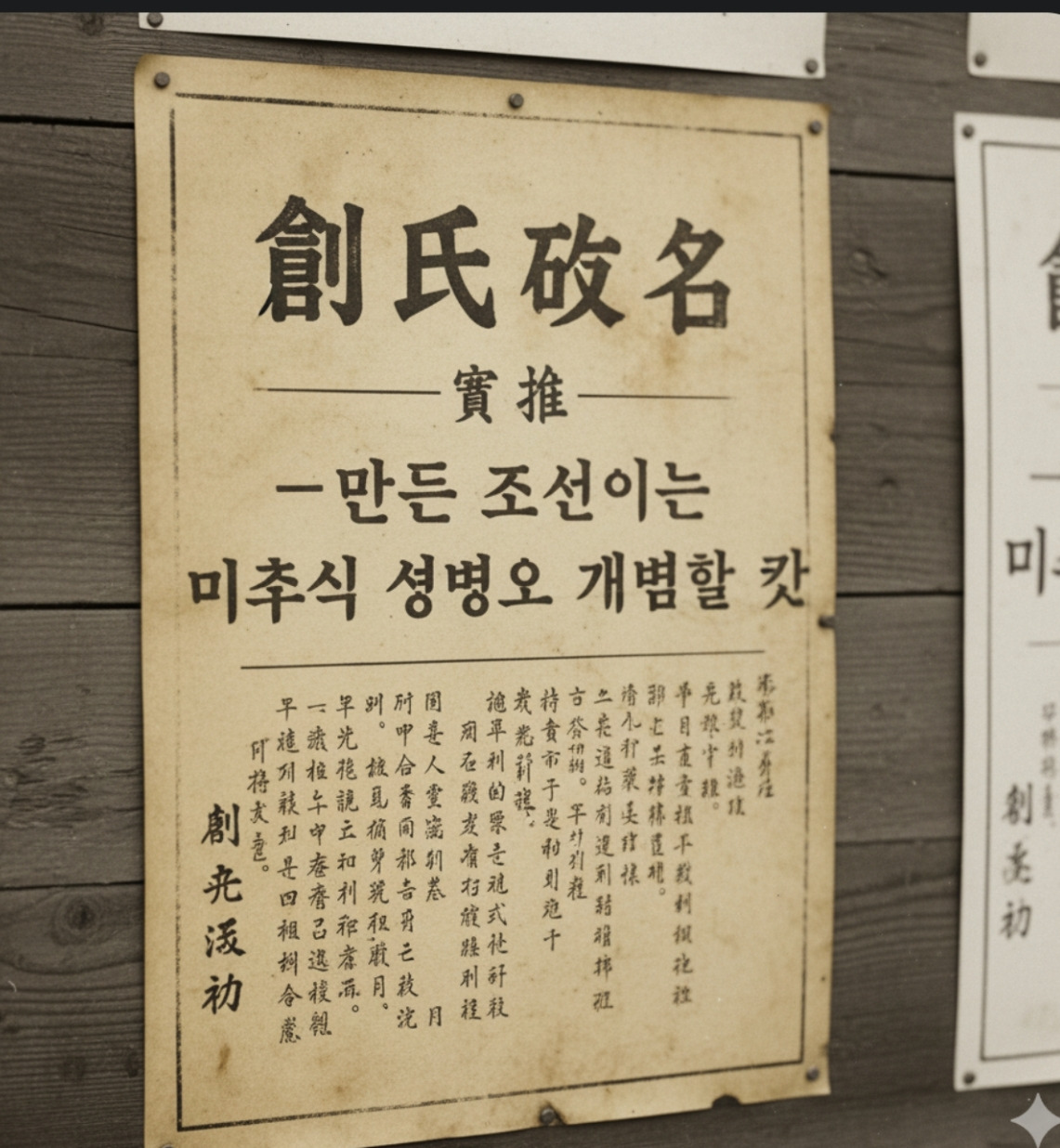 "창씨개명 실시 - 모든 조선인은 일본식 성명으로 개명할 것"