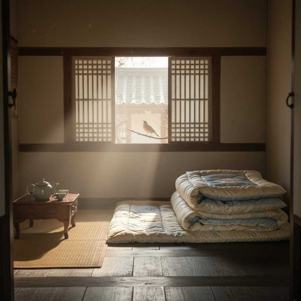 이산갑은 창문 너머로 스며드는 여린 새소리에 잠에서 깼다. 이른 아침을 알리는 종달새의 맑은 지저귐이었다. 반쯤 덮인 이불을 밀어내며 천천히 상체를 일으키자, 얇은 솜이불 아래로 느껴지는 싸늘한 기운이 어느새 초봄임을 알렸다. 침상 옆 창문 틈새로 비집고 들어온 햇살이 방 안의 정갈한 가구들과 먼지마저 금빛으로 물들이고 있었다.작은 창 너머 마당에는 살구나무 한 그루가 아직 움트지 않은 가지를 하늘로 뻗어 있었다. 바람이 살랑일 때마다 연한 가지들이 가녀리게 흔들렸다. 이산갑은 잠시 그 나무를 바라보며, 언젠가 꽃망울이 터질 날을 조용히 기다리는 생명의 기운을 느꼈다. 마당 한구석에는 겨우내 쌓인 낙엽 더미가 남아 있었고, 여전한 찬 기운에도 불구하고 새 한 마리가 가지 끝에 내려앉았다. 방금 전 그의 잠을 깨운 그 고운 울음이, 어느새 다시 새벽 공기 사이로 번져나갔다.
