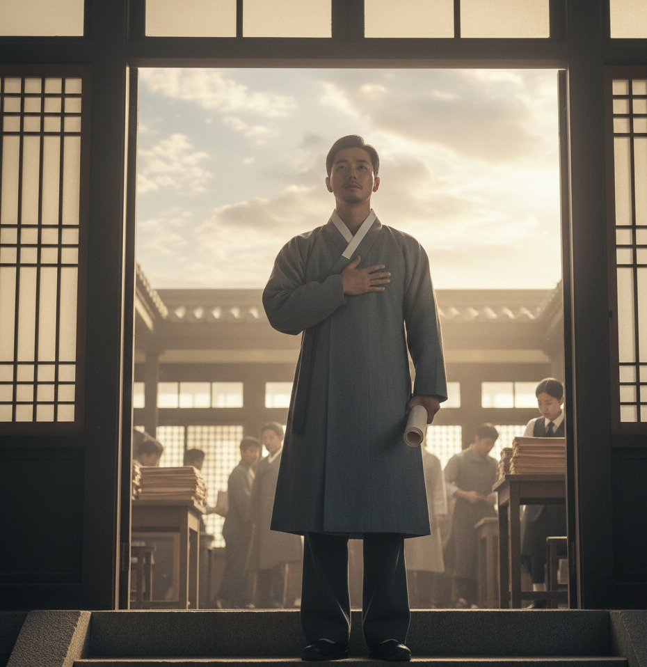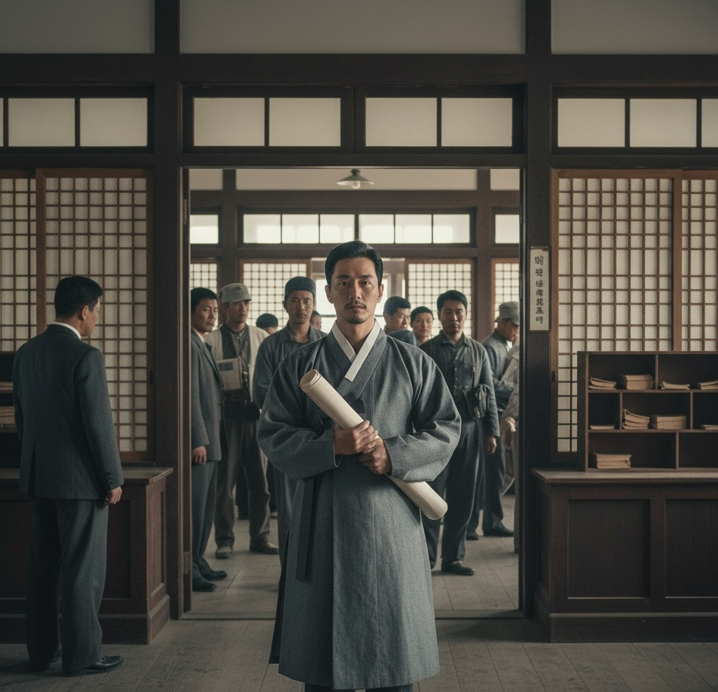 이산갑은 학당 재건 설계도를 품에 안고 읍사무소로 향했다. 건물 입구에 들어서자 일본어와 조선어가 뒤섞인 소리들이 들렸다.
