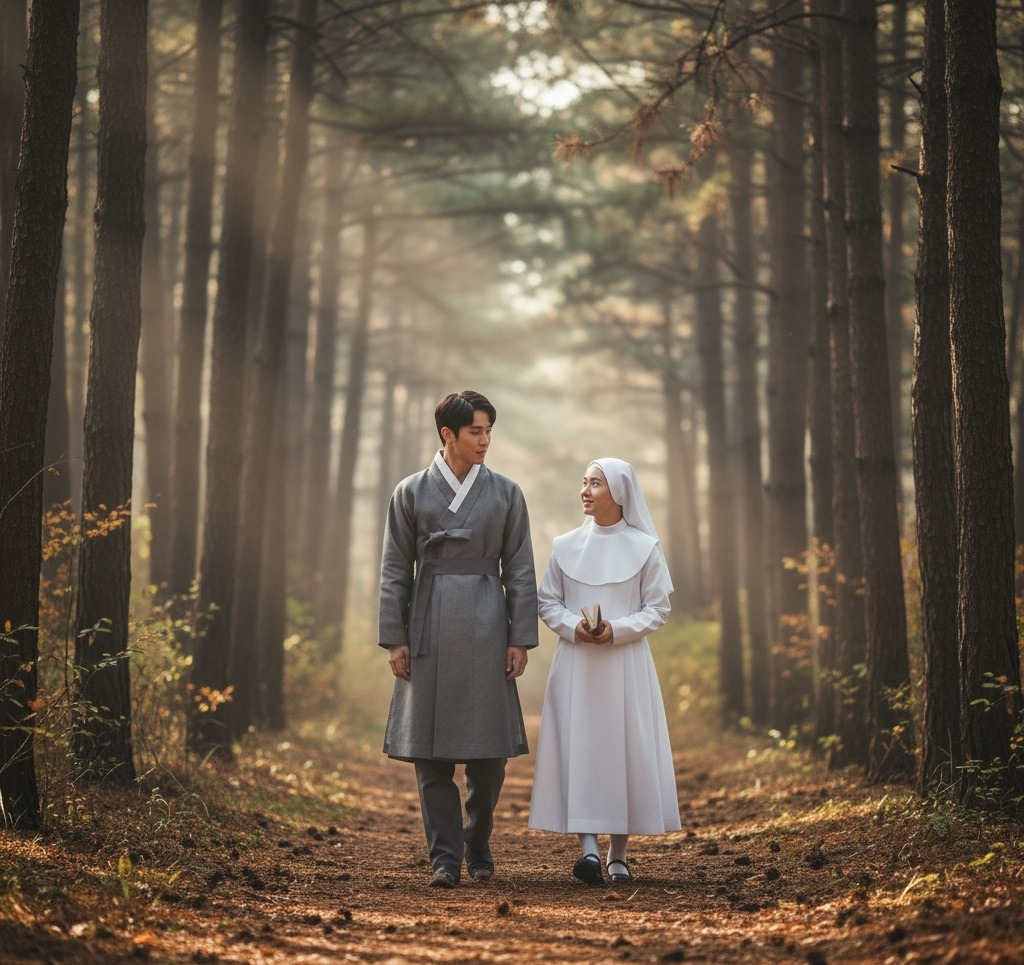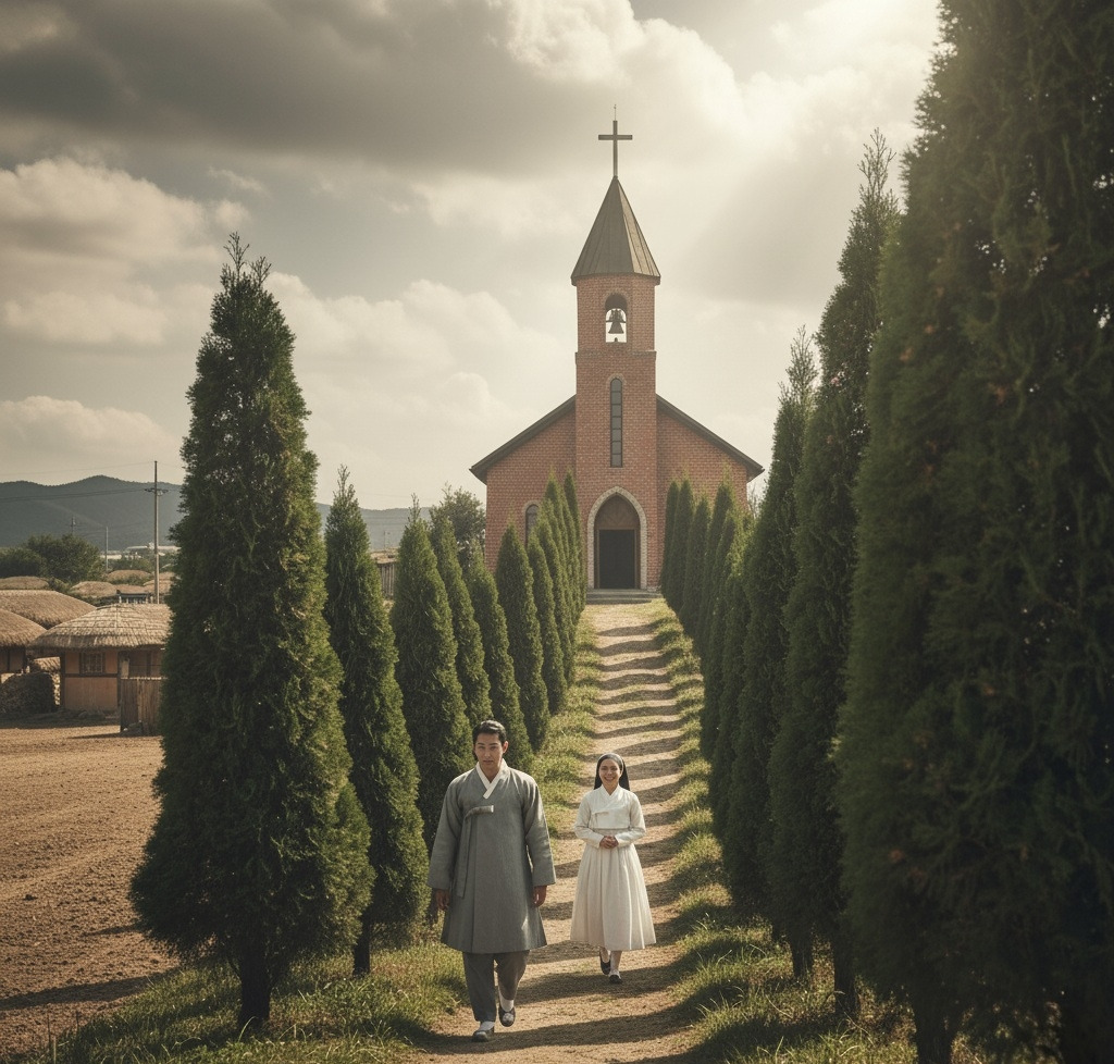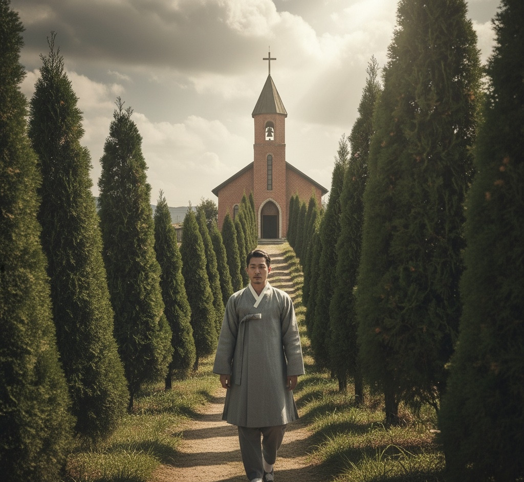 이산갑은 천천히 언덕길을 올랐다.숨이 차오를 무렵, 아담한 성당이 모습을 드러냈다. 붉은 벽돌로 지어진 소박한 건물이었지만, 십자가가 세워진 종탑이 하늘을 향해 있었다.