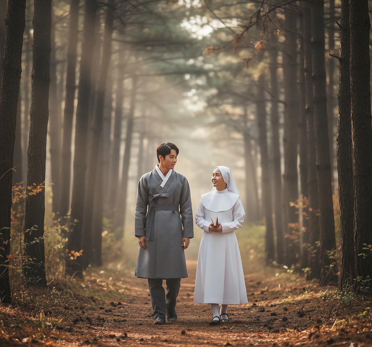 두 남매는 나무 숲 길을 천천히 걸었다.