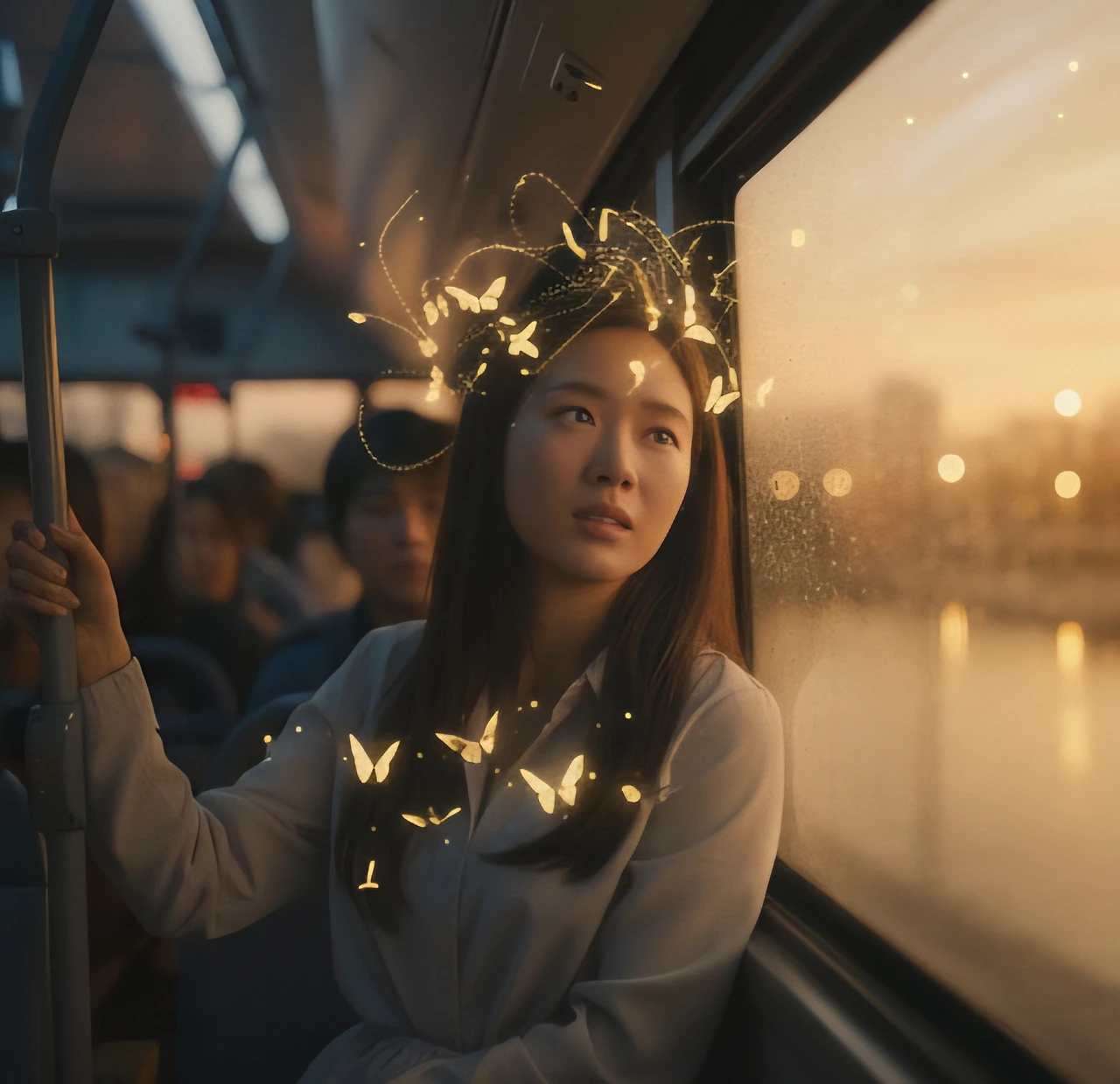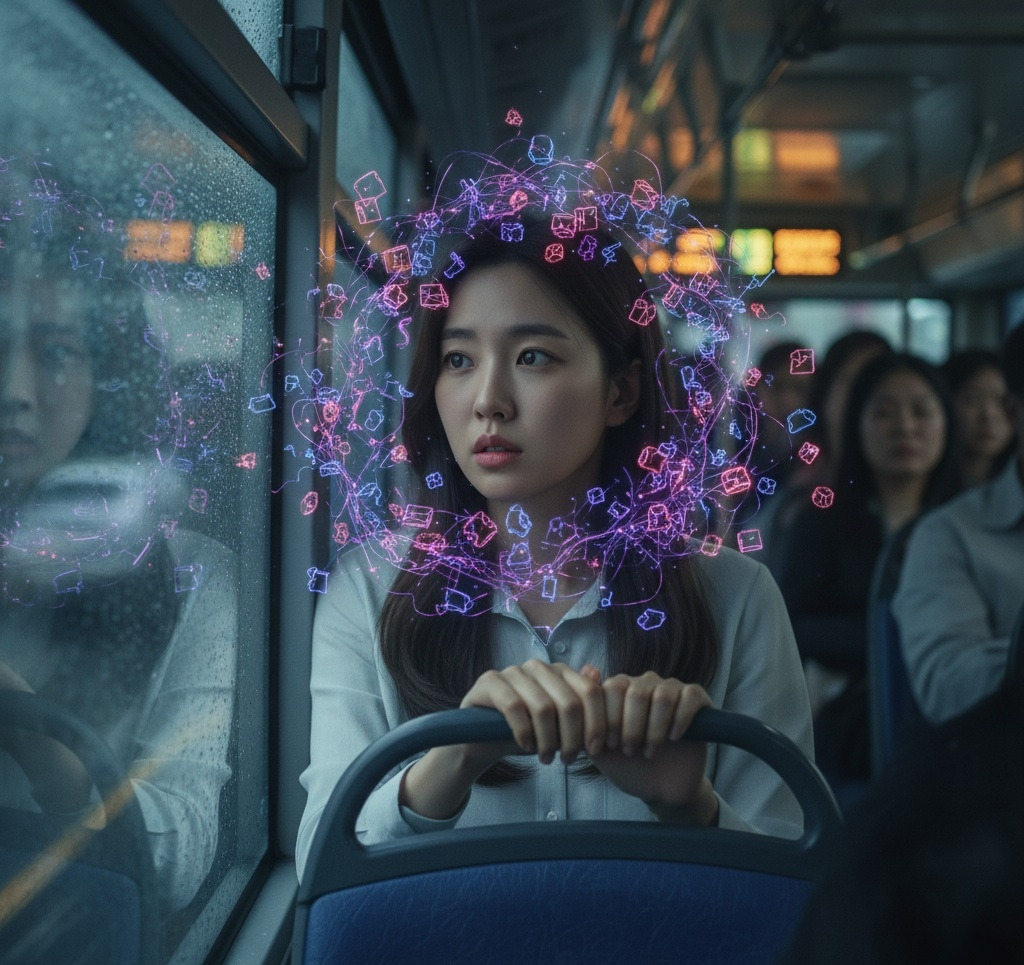 퇴근길, 사람들로 붐비는 버스 안에서 은서는 창밖을 바라보았다. 도로 위로 노을빛이 천천히 내려앉고 있었다. 사람들은 피곤한 얼굴로 창밖을 바라보거나 휴대폰 화면을 스크롤했다.