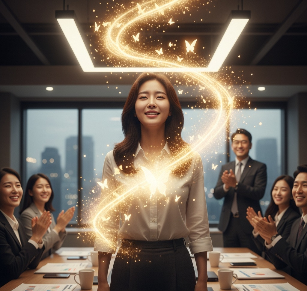 “은주 씨, 이번 자료 정말 좋았어요. 구조도 깔끔하고 내용도 명확하네요.”