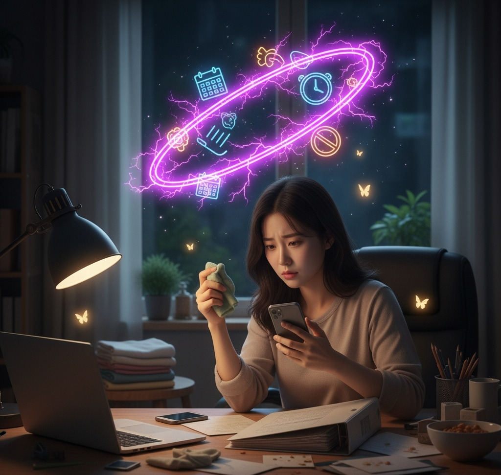 은주는 중요한 회사 보고서를 작성해야 했다. 하지만 책상 앞에 앉자마자 그녀는 문득 창틀의 먼지가 보였다. “이런 건 치워야지…”