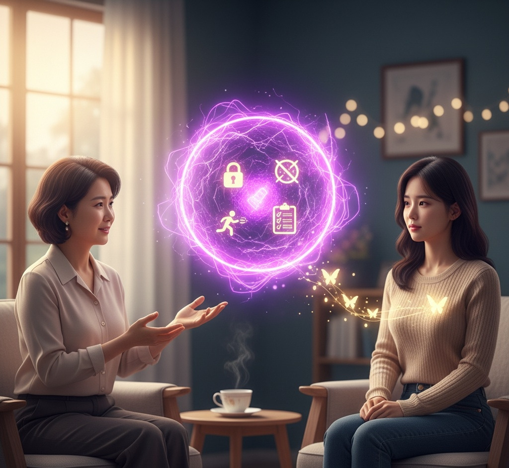 그녀는 상담센터를 찾았다. 조용한 방, 부드러운 음악, 따뜻한 조명이 그녀를 맞았다.