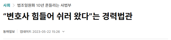 물론 판사는 여전히 우리나라 법조계 최고의 엘리트다. 판결문들을 읽다 감탄한 순간도 여러 번 있었다. 내가 이전 글에서도 썼지만, 판사들의 법률문장은 단연 뛰어나기 때문에 하급심 판결들의 문장구조를 따라쓴 적도 많았다.