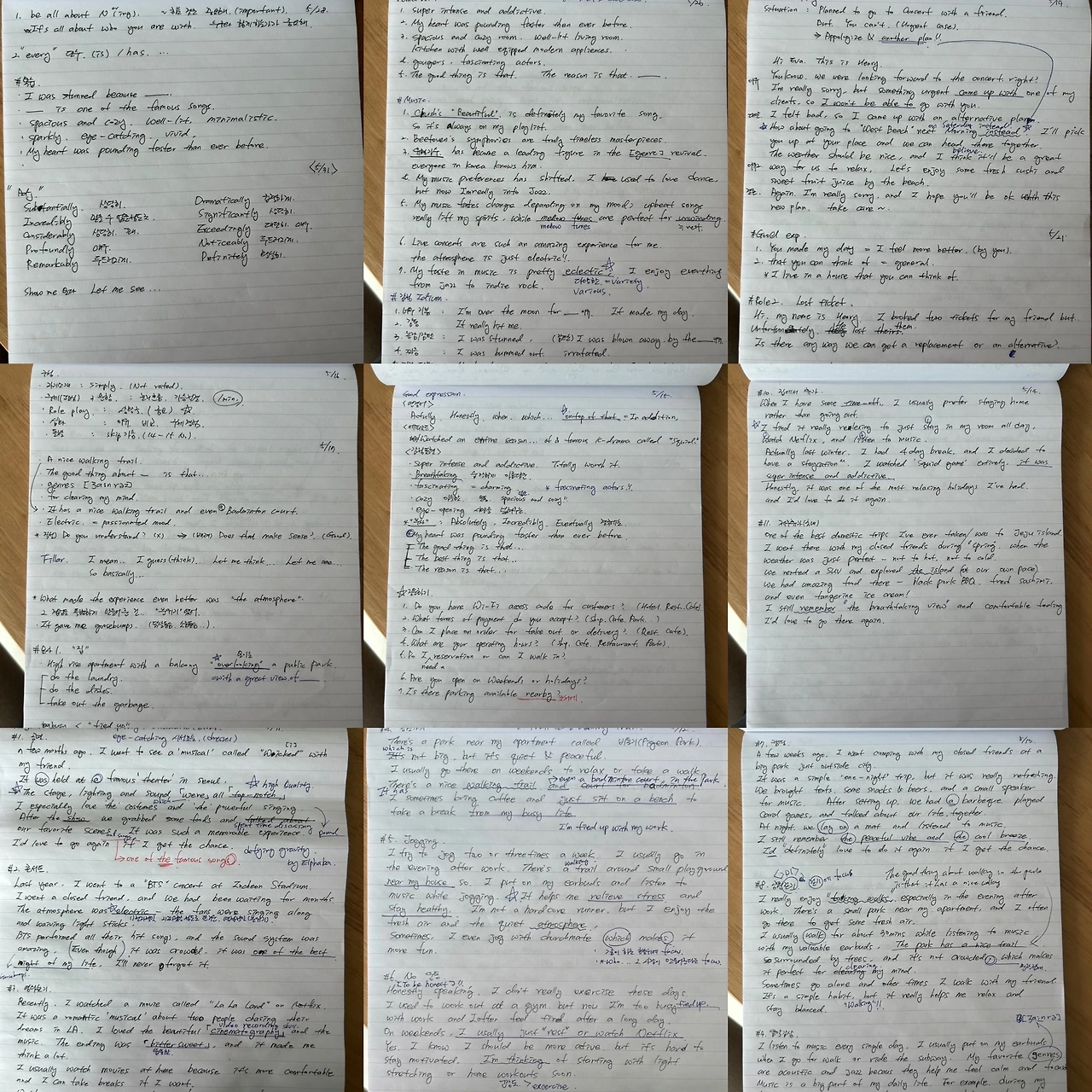 어찌하겠노. 그간의 노트에 적어왔었던 문법들을 응용하고, 형용사/부사들을 섞어야 한다는 온라인 선생님들의 조언을 바탕으로 썰을 풀었다.