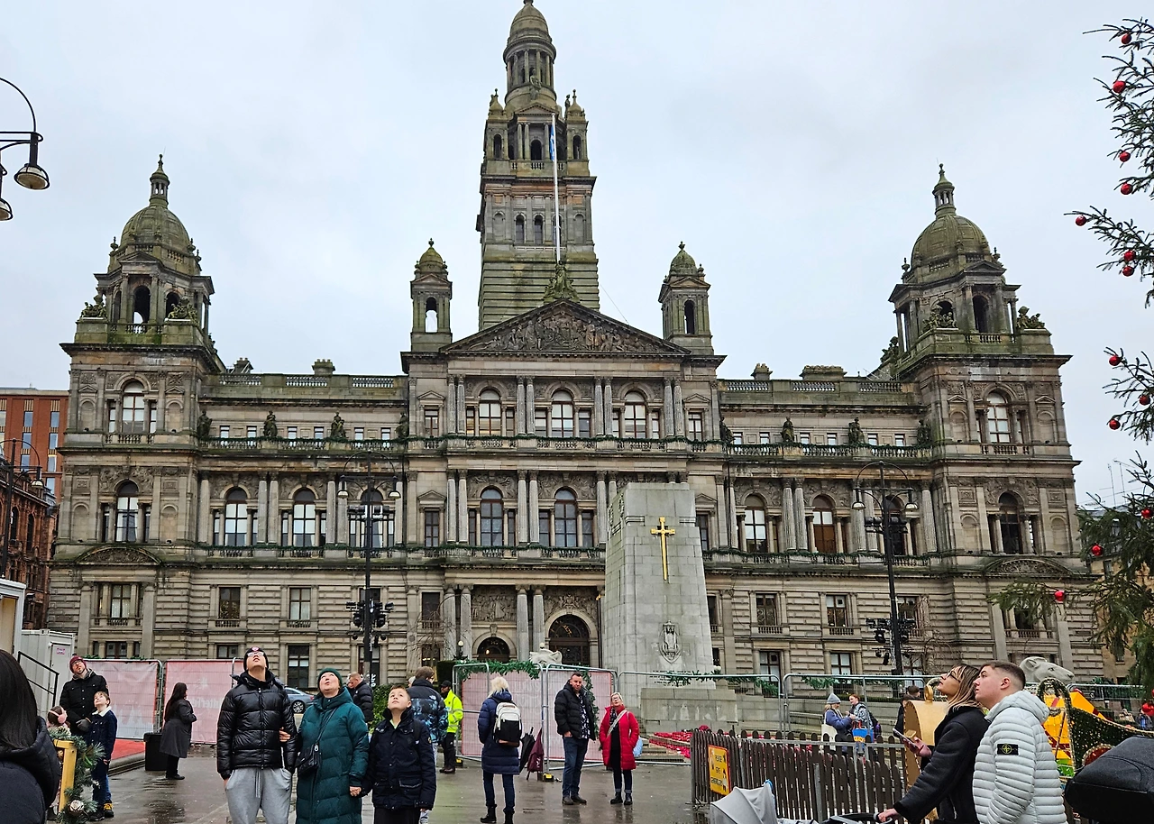 이 고풍스럽고 웅장한 건물은 스코틀랜드 글래스고(Glasgow)에 위치한 조지 광장(George Square)에 있는 글래스고 시청사(City Chambers)이다.
