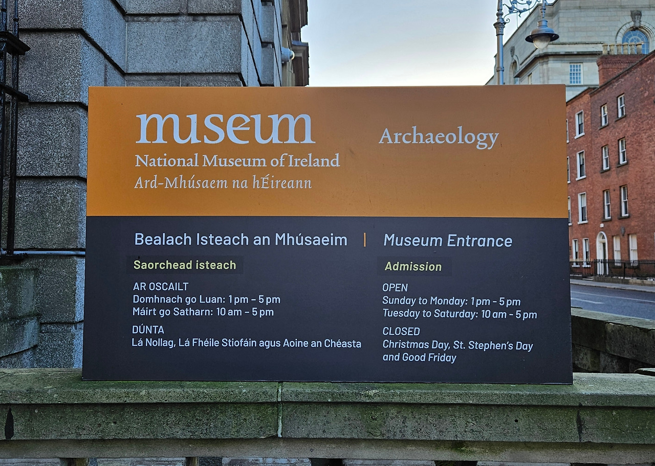 아일랜드 고고학 국립 박물관(National Museum of Ireland – Archaeology)은 더블린 시내 중심에 위치한 아일랜드의 대표적인 박물관 중 하나로, 입장료는 무료이며 아일랜드의 풍부한 고고학적 유산을 깊이 있게 탐구할 수 있는 장소이다.