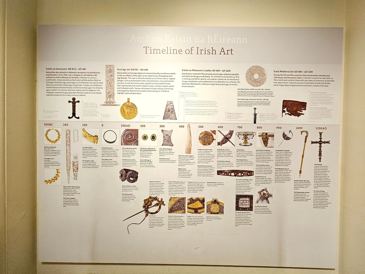 청동기 시대의 화려한 황금 장신구와 공예품과 한눈에 볼 수있는 아일랜드 아트의 타임라인 그리고 다양한 선사시대의 유물을 통해 초기 아일랜드인의 생활을 느껴볼 수 있다.
