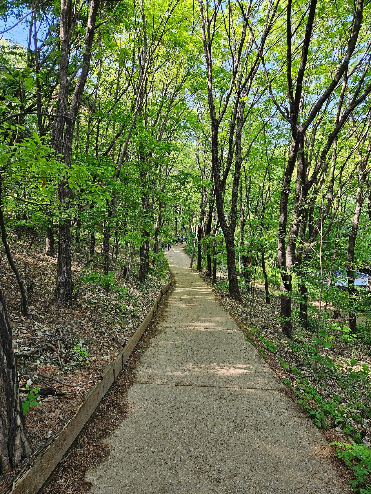 울창한 나무 그늘 아래로 이어지는 산책길은 걷기만 해도 마음이 맑아지는 기분이다.