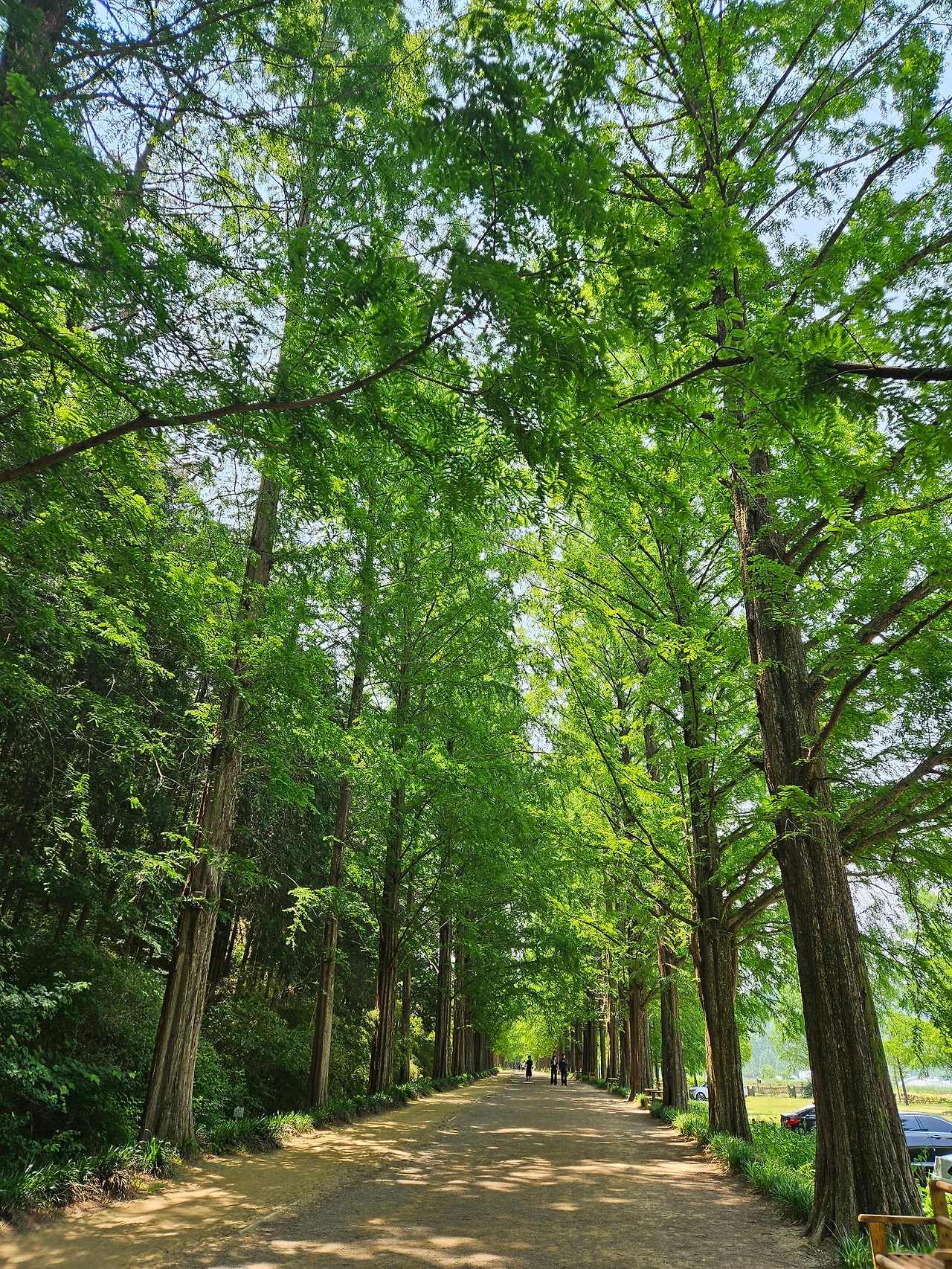 전남 담양 메타세쿼이아길은 1970년대 초반 전국적인 가로수 조성사업의 일환으로 3~4년생 묘목을 심으면서 조성되기 시작했는데 현재는 울창한 메타세쿼이아 가로수길로 성장해 대표적인 관광 명소가 되었다. 초록이 무성한 길은 분명 우리에게 주는 에너지가 있는것 같다.