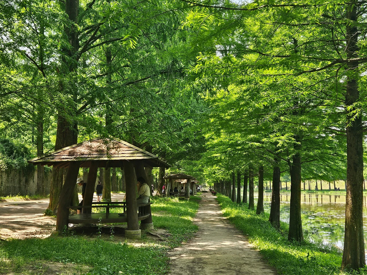 이곳은 KBS <1박 2일> 촬영지로 소개된 장소로, 초록 나무들이 연못을 둘러싸고 있는 모습이 마치 수채화 속 장면처럼 평화롭고 연못가의 정자는 잠시 앉아 명상하기 좋은 자리다.