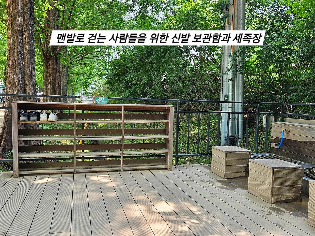 메타세쿼이아 길의 시작과 끝은 이렇게 세족장과 신발을 보관할 수 있는 곳이 있어서 발이 더러워질 걱정 없이 편하게 걷고 씻을 수 있다.