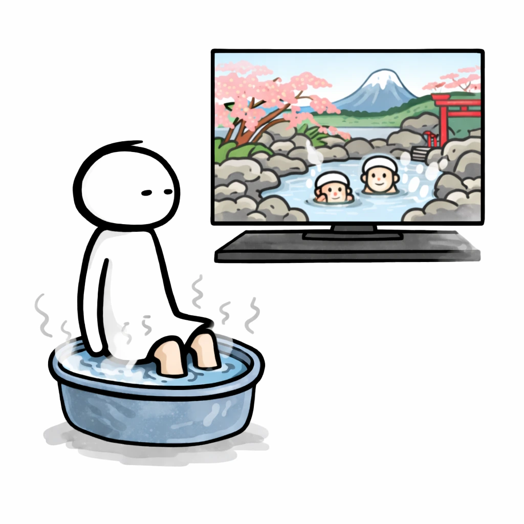 마음은 TV 속 노천탕인데