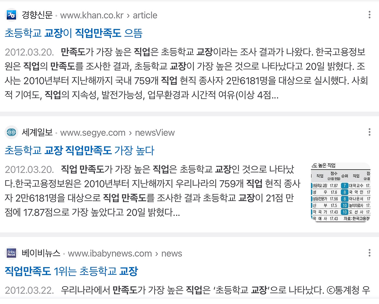 2012년만 해도 초등학교 교장은 우리나라 직업 중 직업만족도가 가장 높은 직업 1위였다.