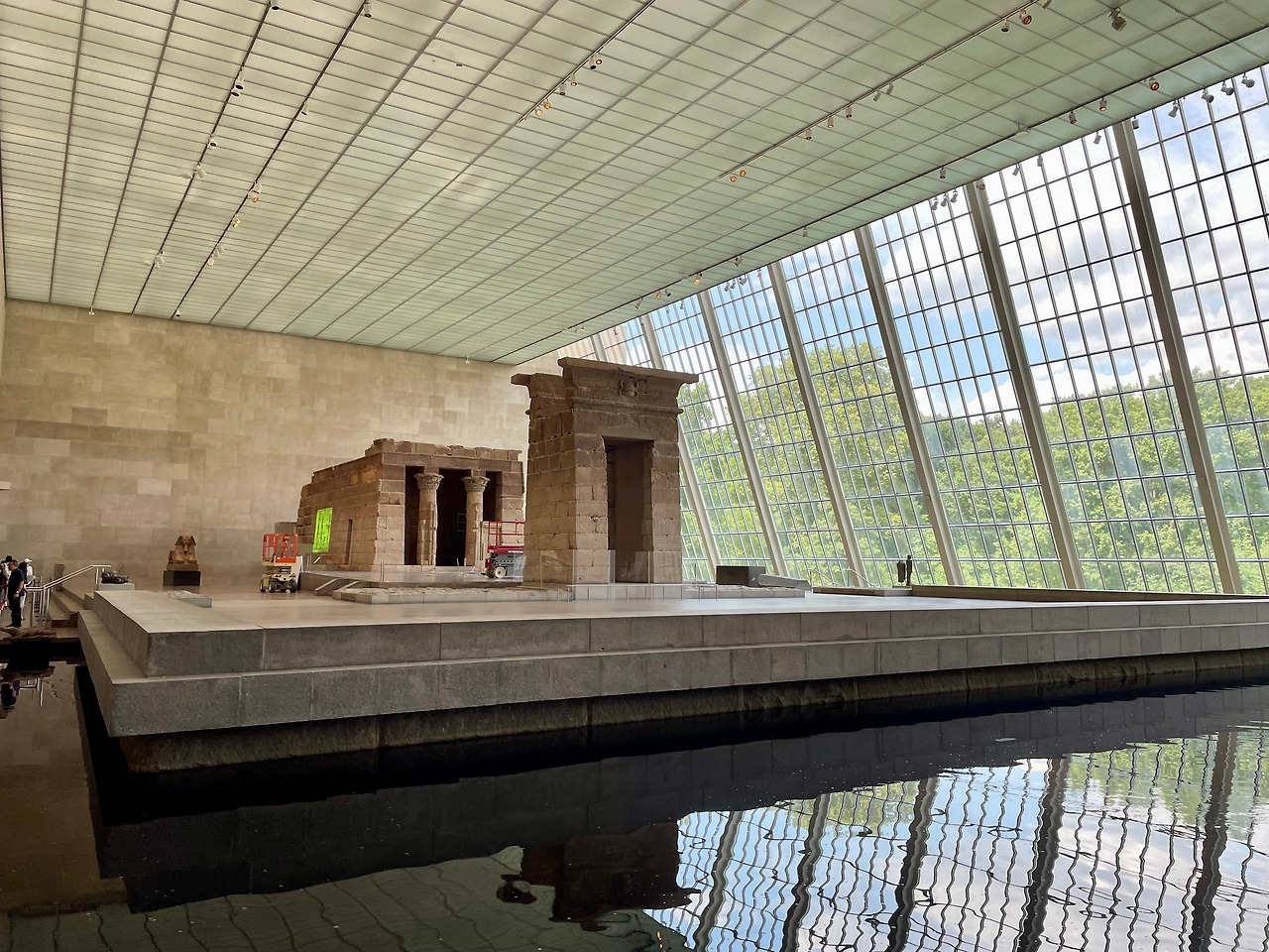 이집트 전시관 끝에 도달하면 커다란 실내 광장이 나타나고 거기에는 이집트에서 통째로 옮겨온 석조 신전이 있습니다. 원래 이집트 나일강 상류의 누비아 (Nubia)에 있던 덴두르 신전 (Temple of Dendur)입니다. 고대 이집트 문명 말기였던 기원전 31년, 이집트 여왕 클레오파트라 (Cleopatra)와 사랑에 빠졌던 로마 장군 마르쿠스 안토니우스 (Marcus Antonius)를 제압하고 이집트를 로마 제국의 일부로 복속시킨 아우구스투스 (Augustus) 황제의 지시로 지어진 신전입니다. 그렇게 만들어진 덴두르 신전의 표면에는 기원전 3천 년 전부터 계속 숭배해 온 전형적인 이집트 신들의 그림이 세겨져 있습니다. 1960년에 이집트가 이 지역에 아스원 하이 (Aswan High) 댐을 건설하게 되면서 이 신전이 영원히 수몰될 위기에 쳐해 졌는데요, 이때 미국 정부는 이집트 정부와 상의해서 이 신전을 미국으로 옮겨왔습니다. 그 신전을 600여 개의 조각으로 분해한 후, 배에 실어 운송을 한 다음, 미국에서 다시 재건한 것입니다. 원래 미국의 여러 박물관에서 서로 이 신전을 유치하려고 했는데, 야외에 설치하겠다는 제안들은 다 거절당했습니다. 이집트의 사암 (sandstone)으로 만들어진 신전인데 미국에서 비를 맞으면 몇백 년 못 간다는 판단을 한 것입니다. 마침 메트로폴리탄 박물관에서 실내 광장을 새로 조성하고 습도를 낮게 유지하겠다고 제안을 해 와서 이 신전이 이곳에 위치하게 됐습니다. 이 신전이 위치한 실내 광장이 그 때문에 새로 만들어졌는데요, 이 박물관 내에서 제일 쾌적한 공간 중 하나입니다.