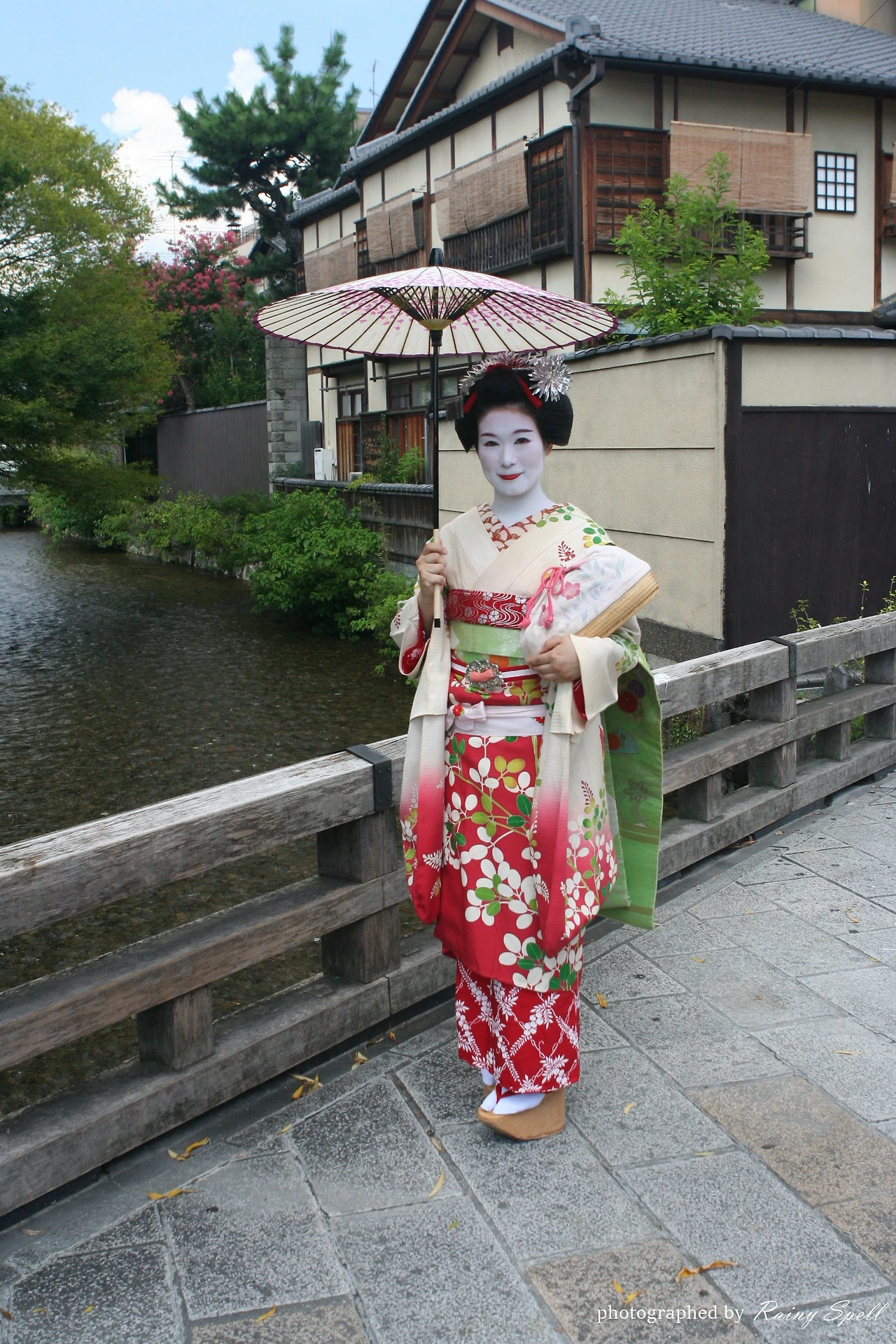 교토에서 또 아름다운 거리로 손꼽히는 곳이 신사이바시도리인데, 여기도 기온처럼 전통가옥들이 즐비한 곳이다. 이런 곳들은 세계 공통으로 건물들의 고도제한이 있어 시야를 가리는 일 없이 2~3층이 고작인 주변의 전통가옥들을 제대로 즐길 수가 있다. 오래된 목재로 지어진 전통가옥들을 천천히 즐기고 있는데, 운 좋게 풀메이크업의 게이샤(芸者, 예자)…가 아니라 게이샤 체험을 하는 일반인을 만났다. 진짜 게이샤가 낮에 얼굴에 흰 칠을 하고 돌아다닐 일은 당연히 없고(공연은 밤이니까), 사진을 찍는 것도 대놓고 초상권을 침해하는 것이기 때문에 사실 사진도 찍으면 안 된다. 어쨌든 여행중인데 게이샤 코스프레를 하는 사람을 만났으니 사진을 찍으려고 다가가서 사진 찍어도 될까요?라고 영어로 물으니 알아들은 건지 못 알아들은 건지 고개를 끄덕해준다. 고맙다고 하고 찰칵.