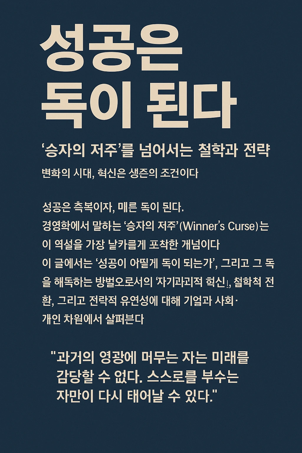 ‘승자의 저주’는 단지 실패의 사례를 나열하는 것이 아닙니다. 이는 성공이 오히려 위험의 출발점이 될 수 있다는 역설을 직시하라는 명령입니다.