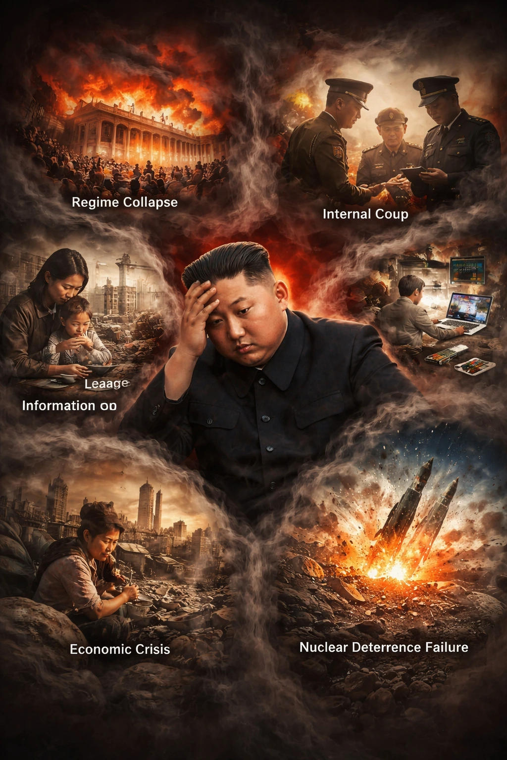 북한 체제의 가장 큰 두려움은 단순한 군사적 패배가 아니라 정권 붕괴(regime collapse)다. 권위주의 국가에서 정권 붕괴는 단순한 정치적 교체가 아니다. 그것은 곧 엘리트 집단의 생존 문제가 된다.