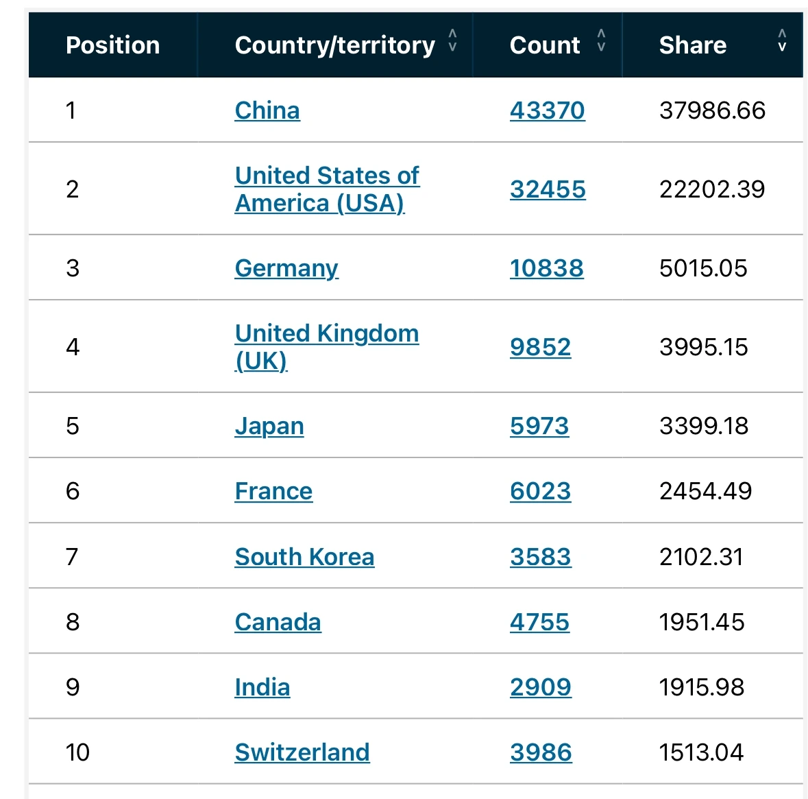 미국과 독일을 합치면 논문개수는 중국이랑 비슷하지만 기여도는 중국에게 한참 밀림.