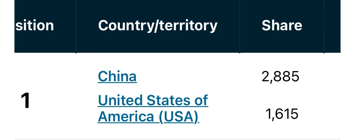 미국과 독일을 합치면 논문개수는 중국이랑 비슷하지만 기여도는 중국에게 한참 밀림.