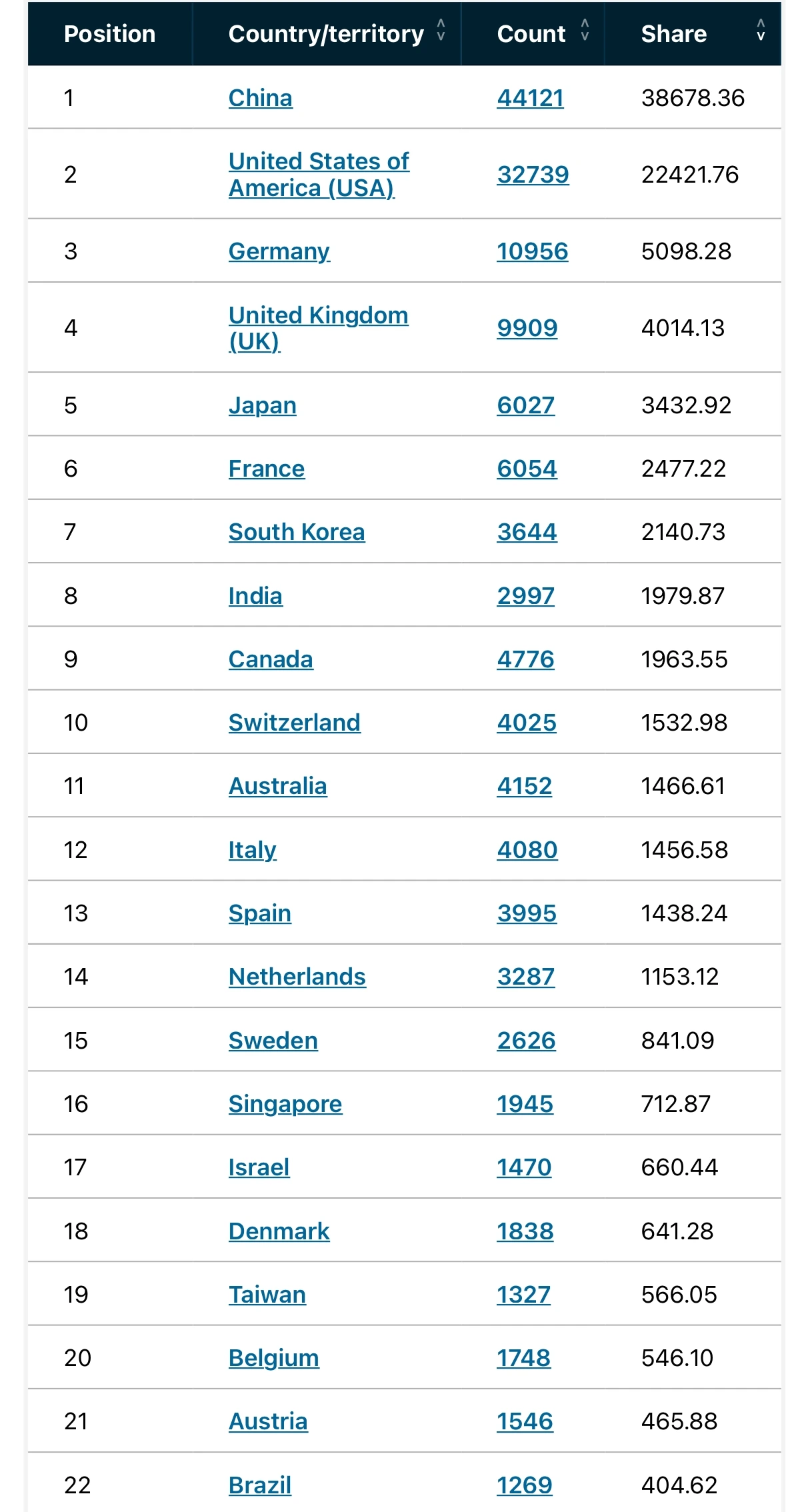 Count는 논문개수, Share는 기여도