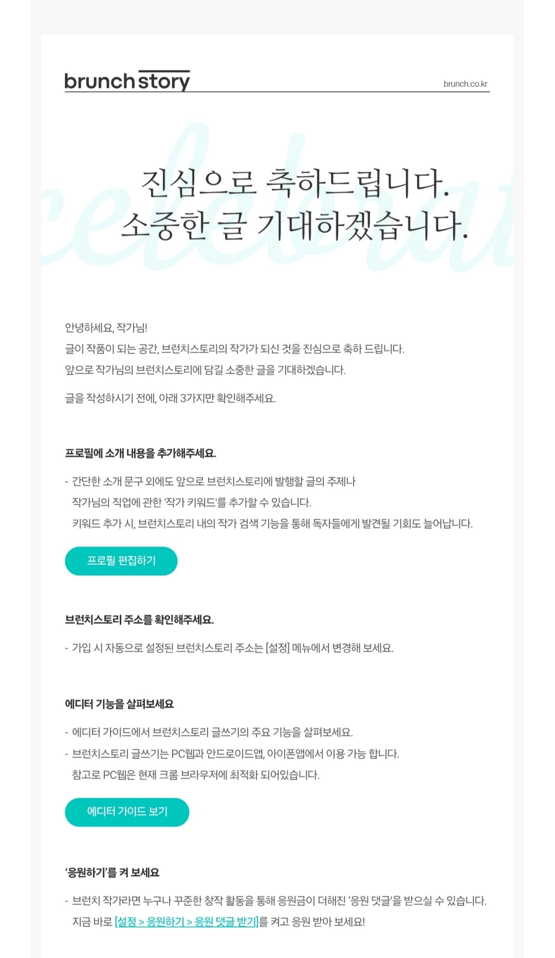 브런치 스토리에 작가로 지원하게 되었어요