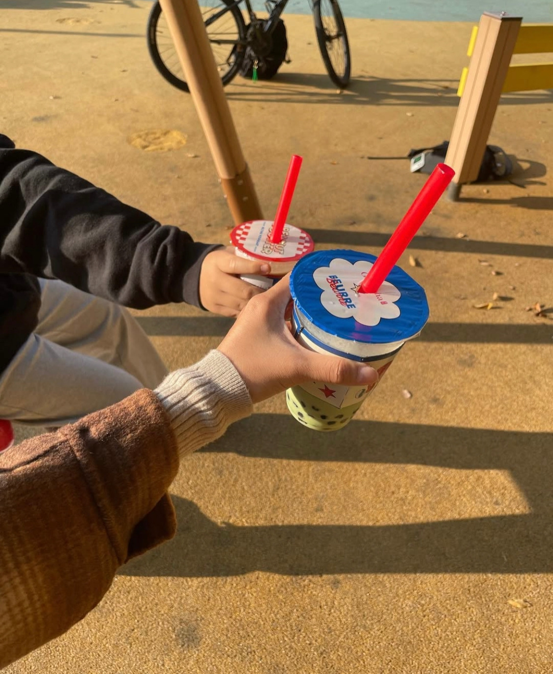 어쩔수 없이 공부를 못하겠다며 신나서 나가는 학생을 데리고 공차를 사서 근처 공원 그네에 앉았습니다.