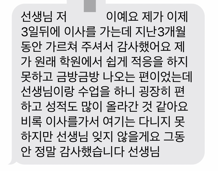 이사가도 한시간씩 버스 타고 여기까지 오겠다고 고집 부리던 너, 자기 누나도 여기 다니면 수학 잘하게 될텐데 이사가서 아쉽다는 너, 말이라도 너무 고마워!