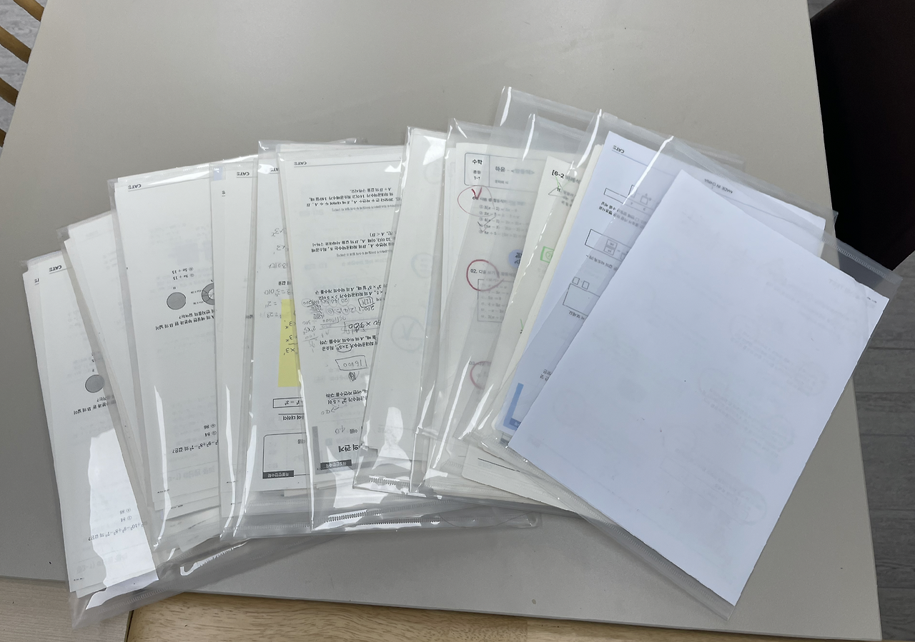 이렇게만 잘 따라오면 무조건 된다! 싶을만큼 나름 머리 싸매고 연구해서 제가 직접 손으로 글씨를 써서 개념 테스트지를 만들기도 하고, 아이들별로 교재 구성을 모두 다르게 해서 10권이 넘는 교재를 제작하기도 했습니다.