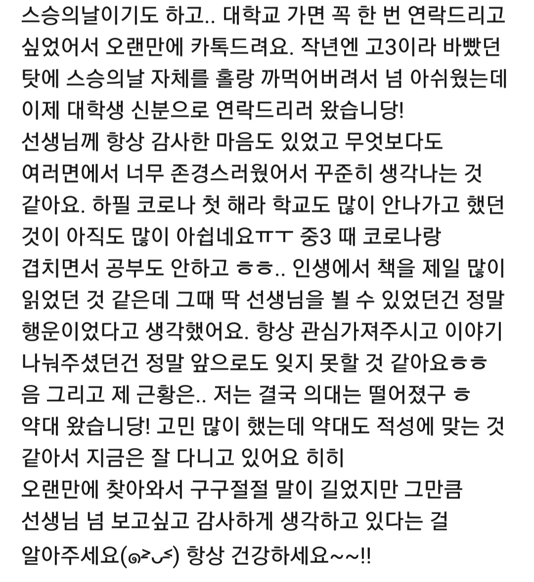 과목이름을 정하게 된 이유이기도 했는데 졸업 후 아이들이 연락올 때는 이야기를 들어주셔서 감사하다는 말을 참 많이 했다.