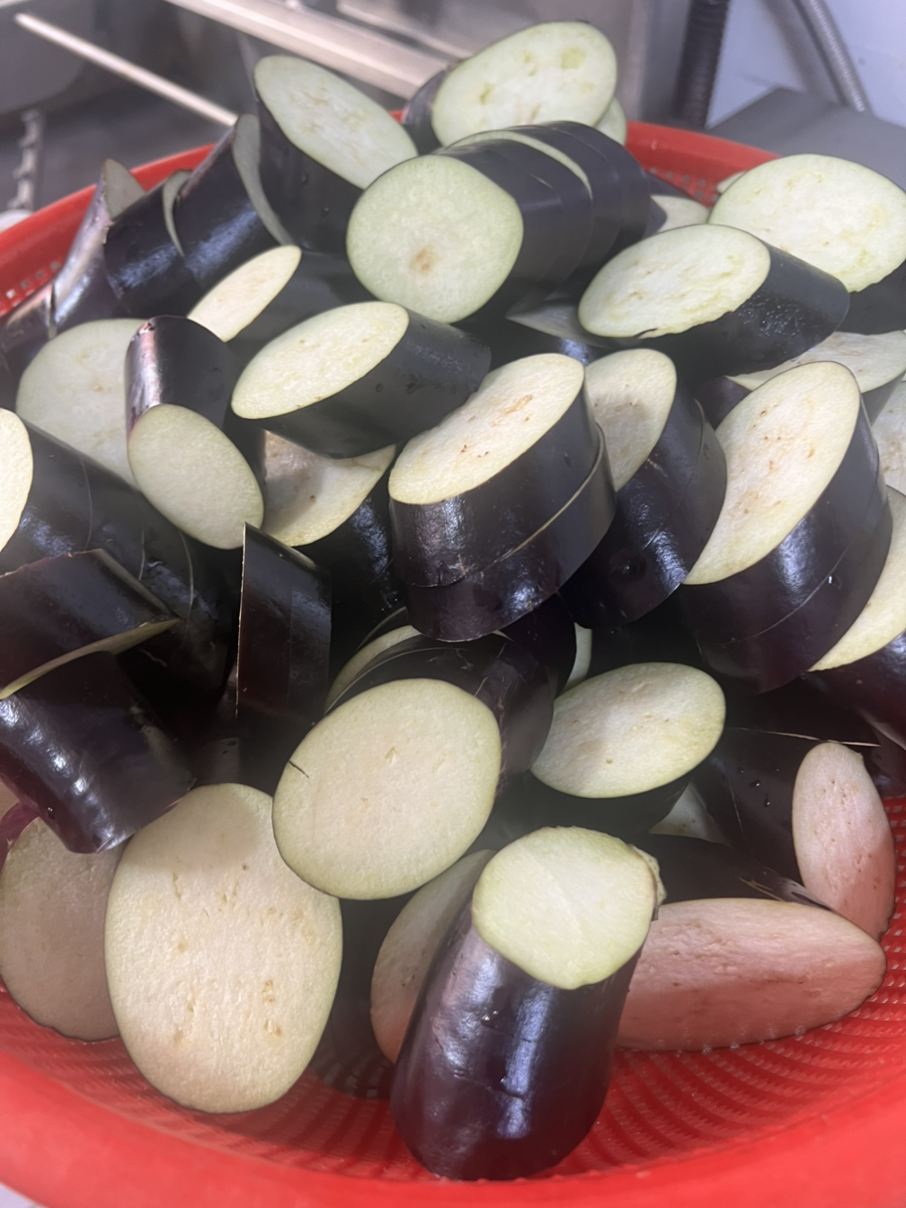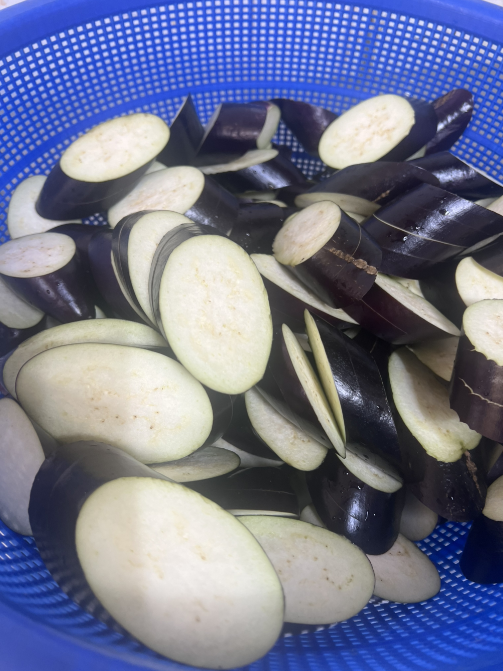 전 가지속을 파내지 않고 그냥 어슷썰기를 하여 한번은 중간 칼집만 넣고 한번은 끝까지 칼로 썰어내서