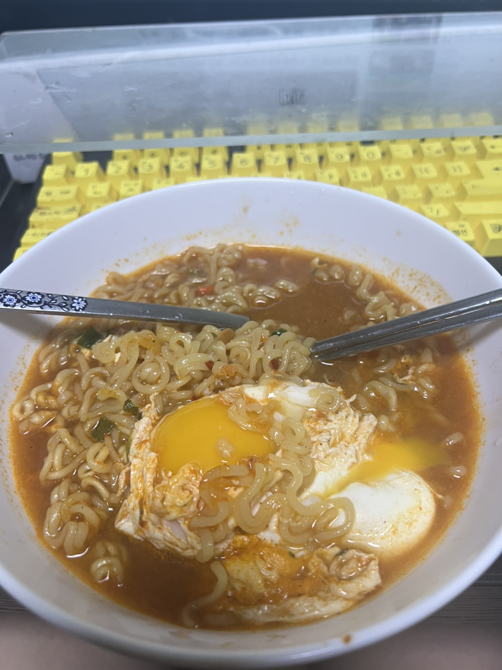 분당서울대 병원에 가서 진료를 마치고~ 집으로 돌아오면서 회사를 가서 미리 조식준비를 해놓고 올까 생각하다가 휴일은 휴일처럼 즐기자 생각하고 혼밥을 할 식당들을 찾아갔으나 다들 문이 닫혀 있거나 웨이팅이 있더라고요. 그래서 그냥 집에 와 라면에 계란 두 개라는 호사를 누려봅니다.