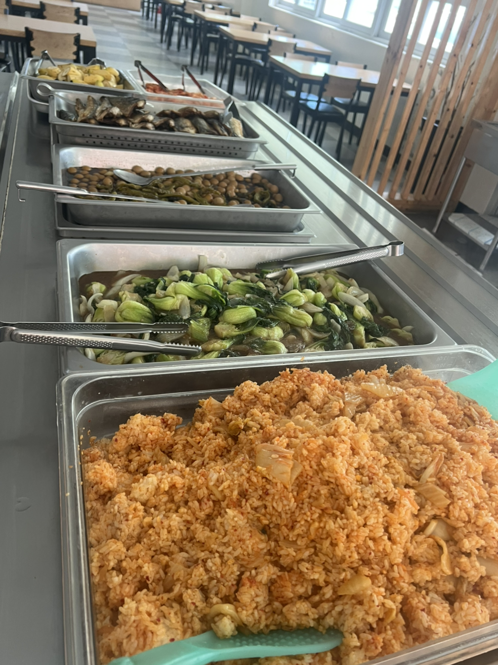 저녁에는 전날밥과 중식 남은 밥을 합쳐 늘 볶음밥을 냅니다.