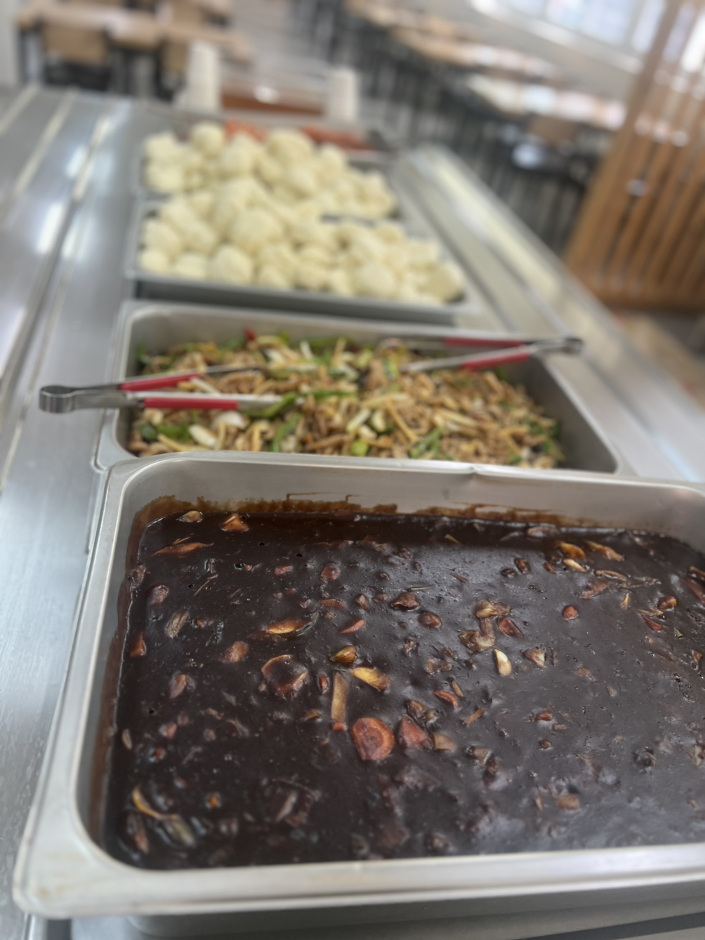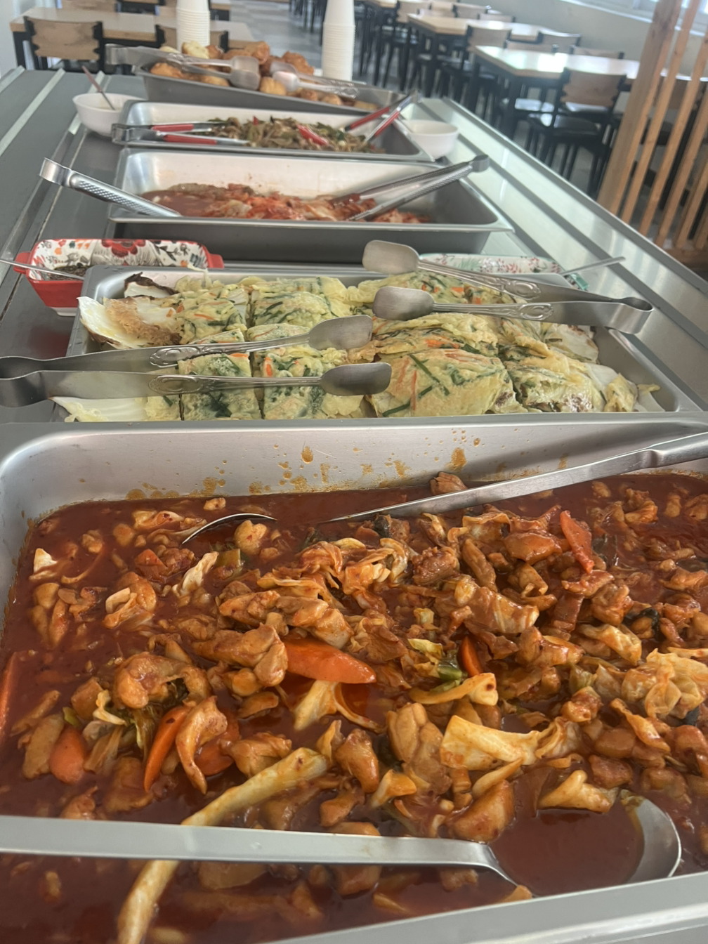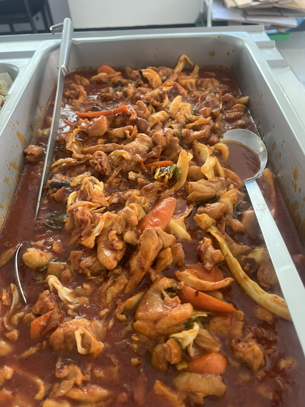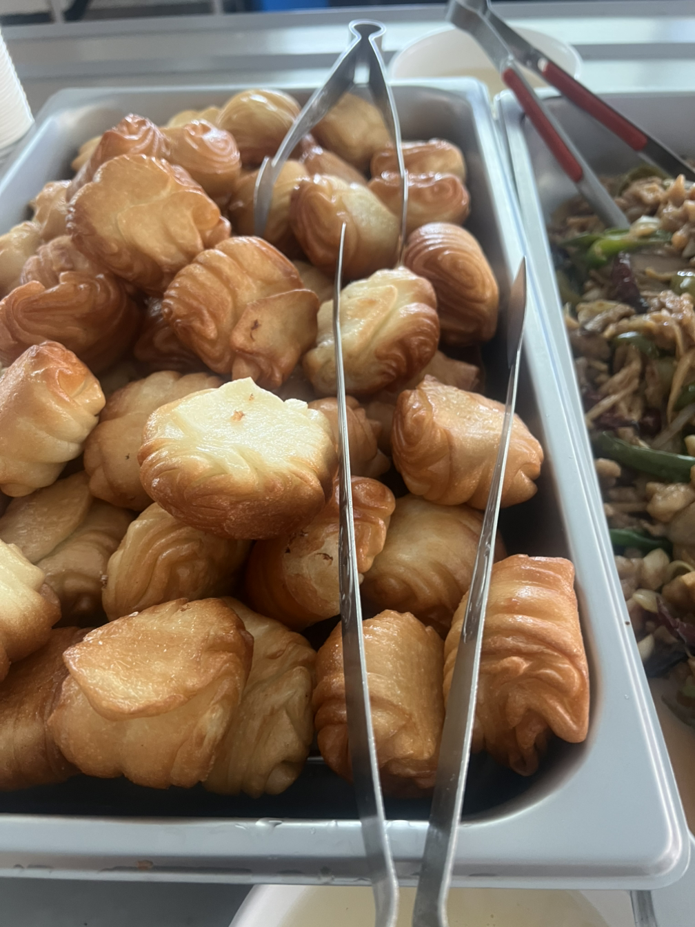결국 석식에는 튀겼어요. 연유랑 함께 냈지요. 마침 고추잡채도 많이 남아서 다시 데워서 냈어요.