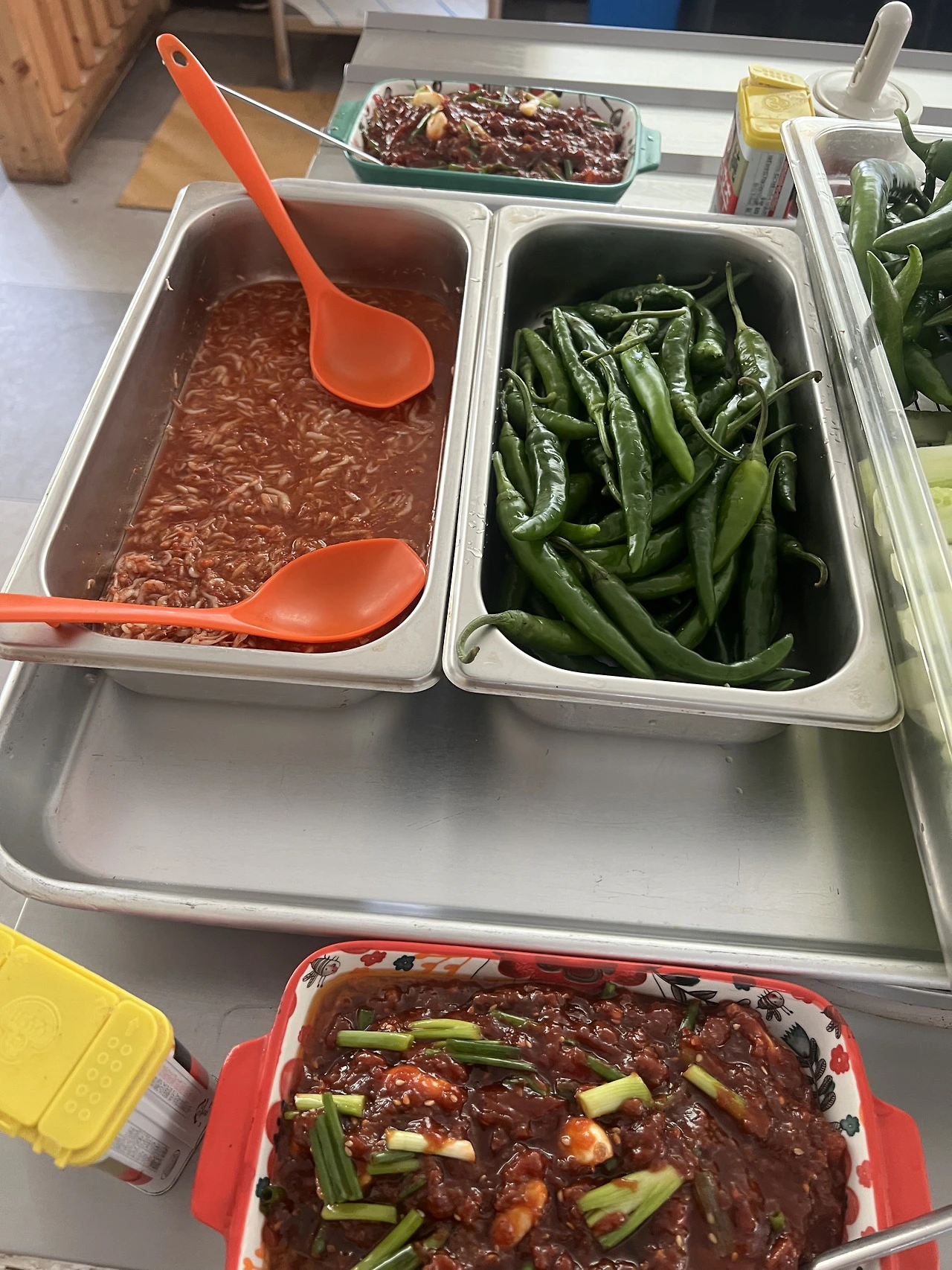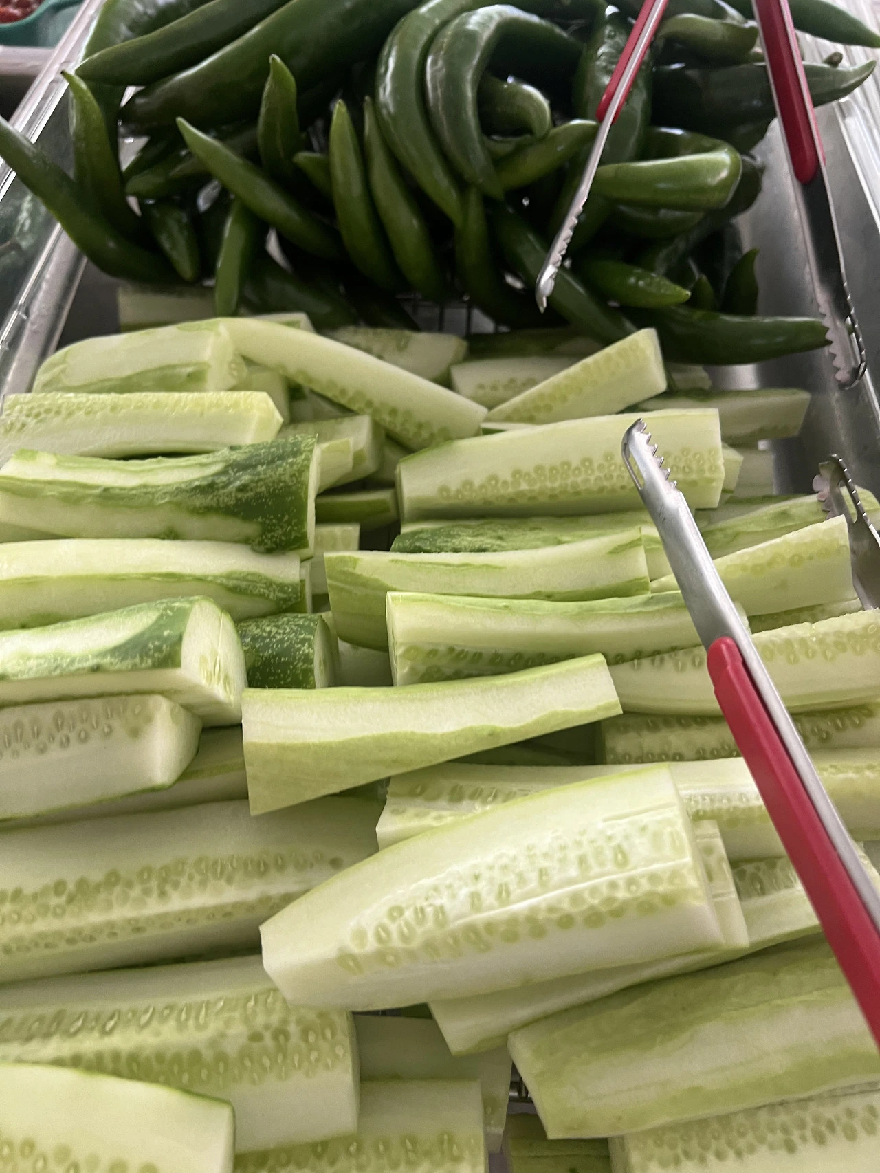 상추, 오이맛고추, 청양고추, 오이스틱 / 마늘 쌈장