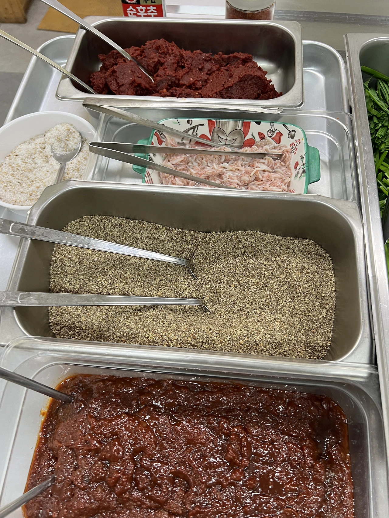 새우젓, 다데기, 소금, 들깨가루. 부추