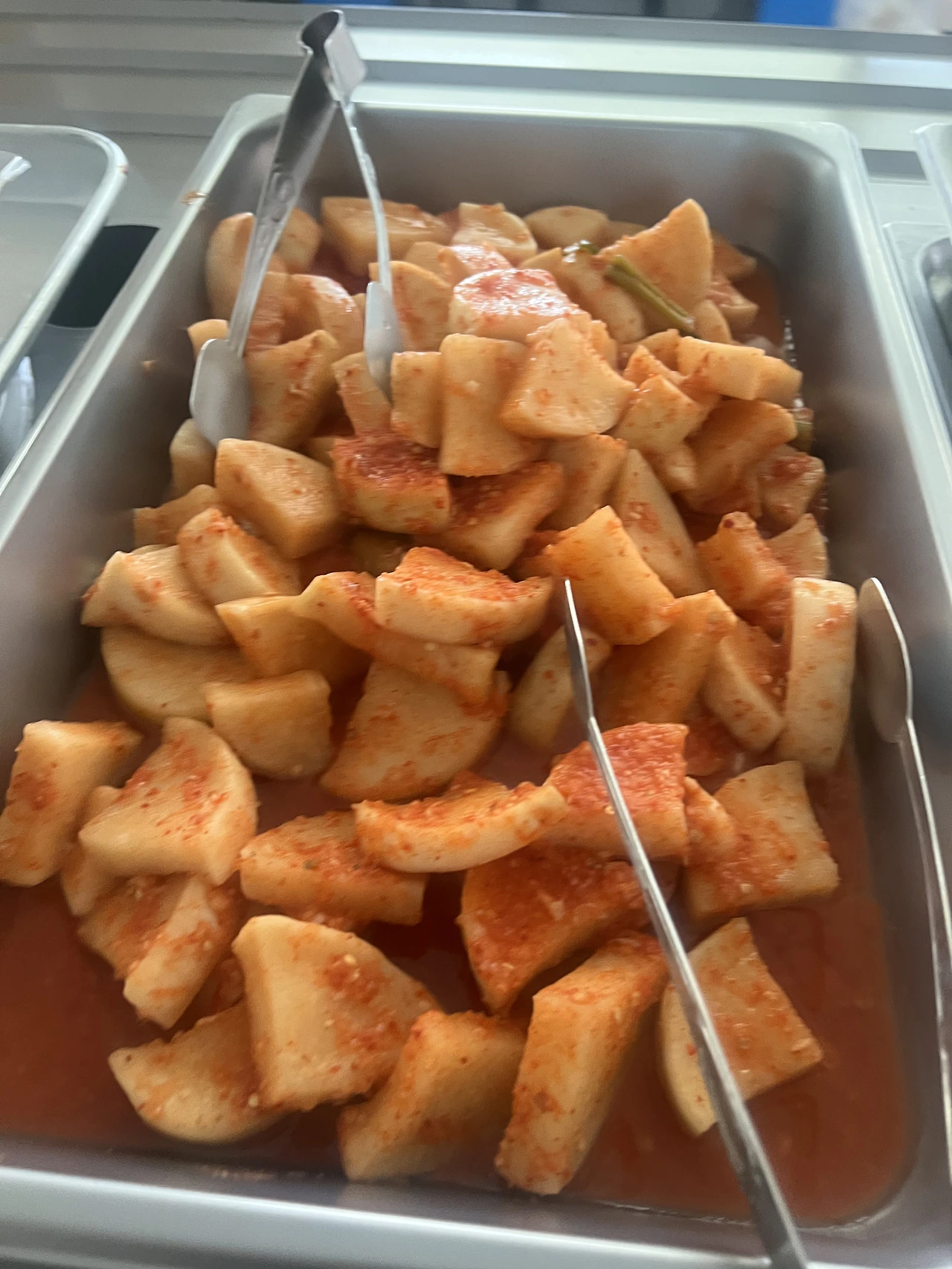 보통 안동 학가산 김치를 쓰고, 여유로 수입김치들을 받아서 익혀놓고는 가열하는 김치볶음이나 찜. 찌개로 쓰는데~ 아니 직원용 야식과 조식 냉장고에 넣어둔 학가산 김치를 너무 많이들 드셔서리~ 오늘 중식. 석식모두 수입김치로 조리를 했네요.
