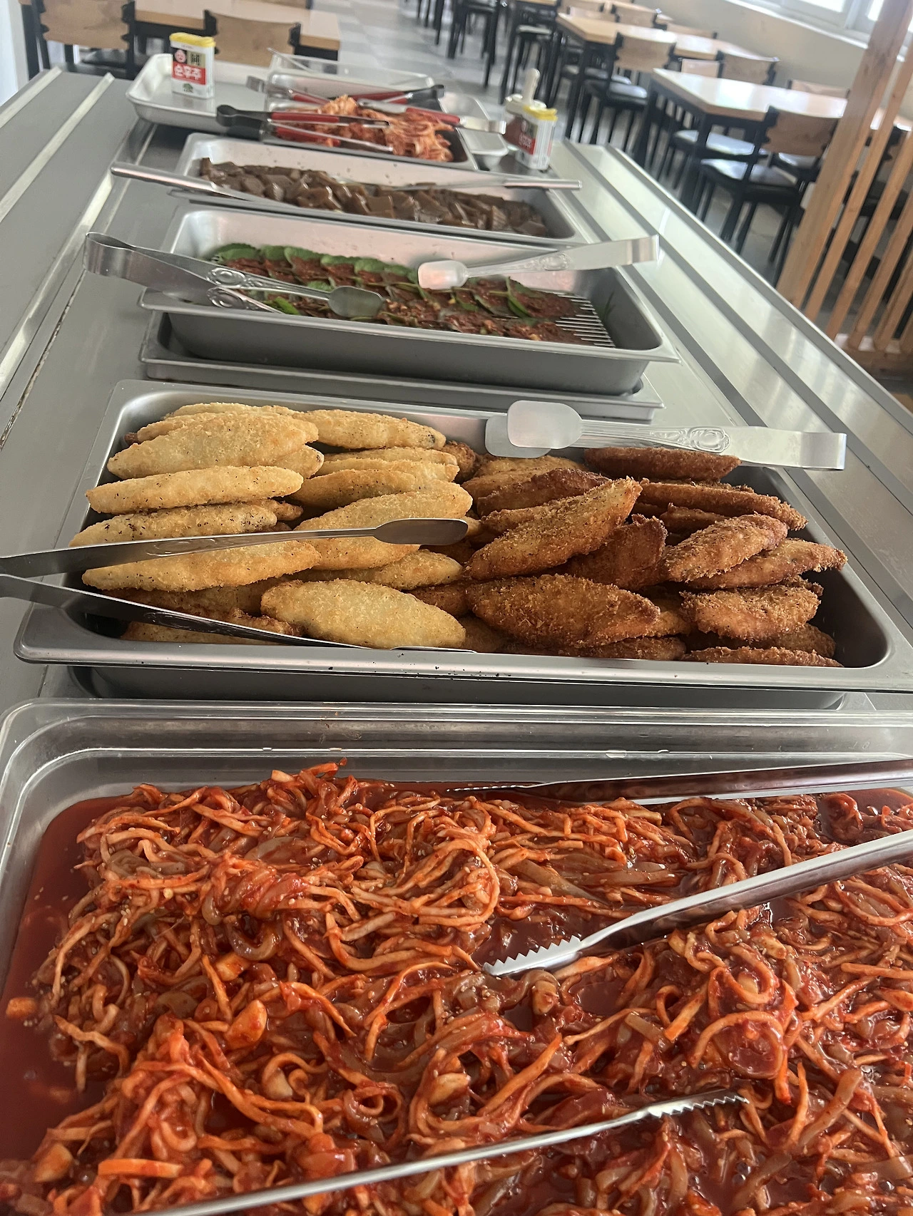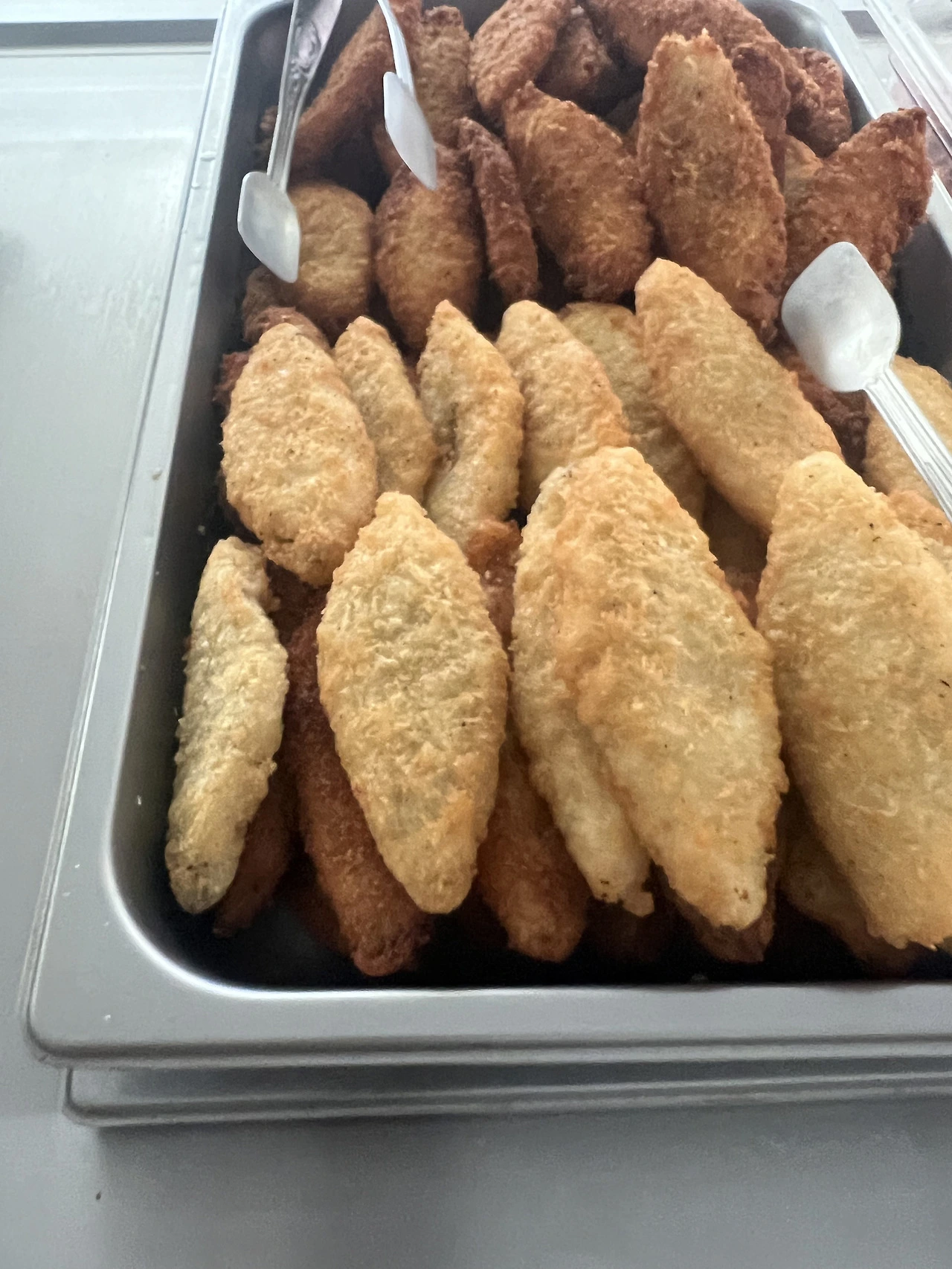 기름솥 온도를 잘못맞춰서 투톤 생선가스가 되어버렸답니다.