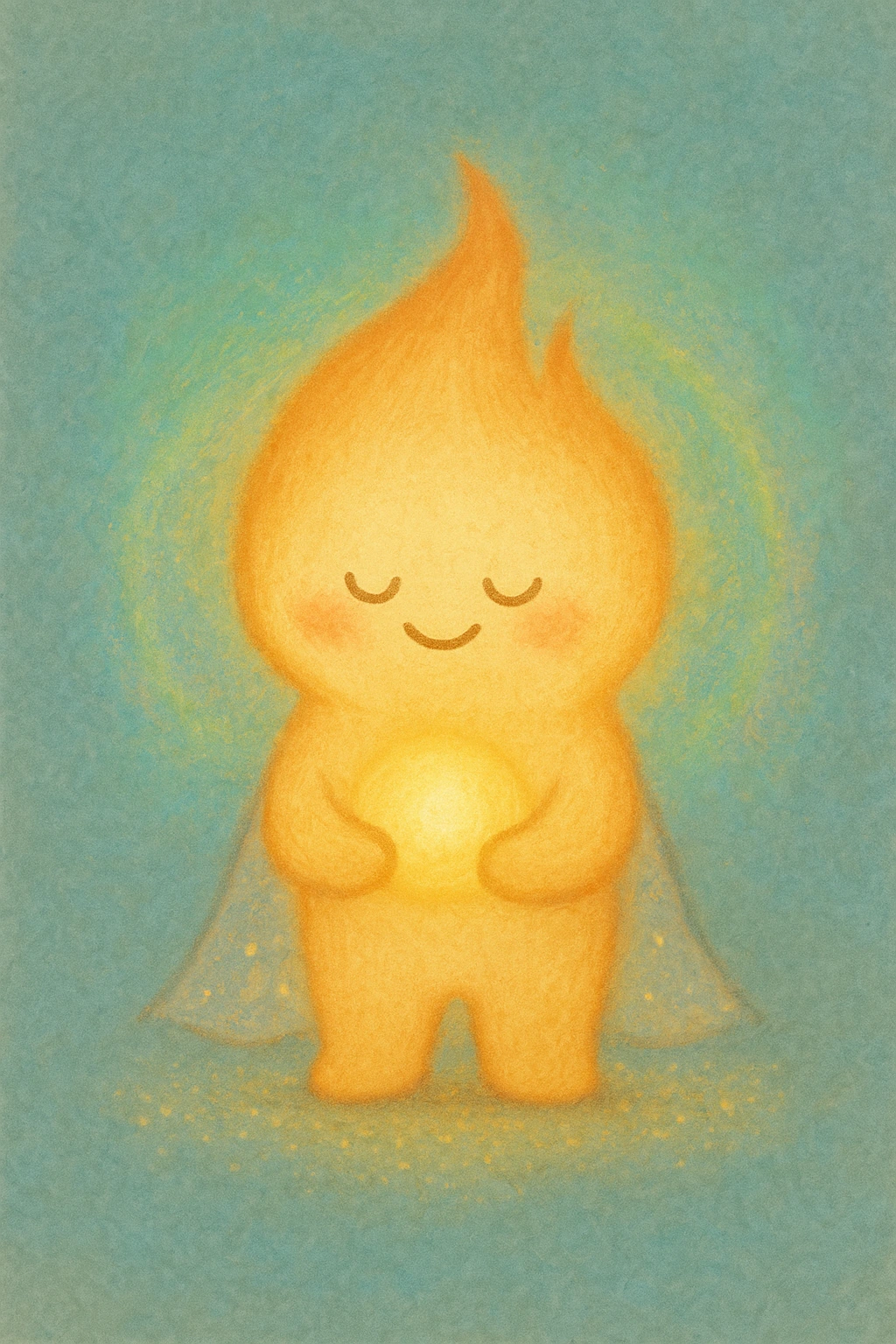 작은 불씨 모양에 빛나는 망토를 두르고는 꺼질 듯 꺼지지 않는 생의 불씨를 조심히 들고 다니는 아이다.